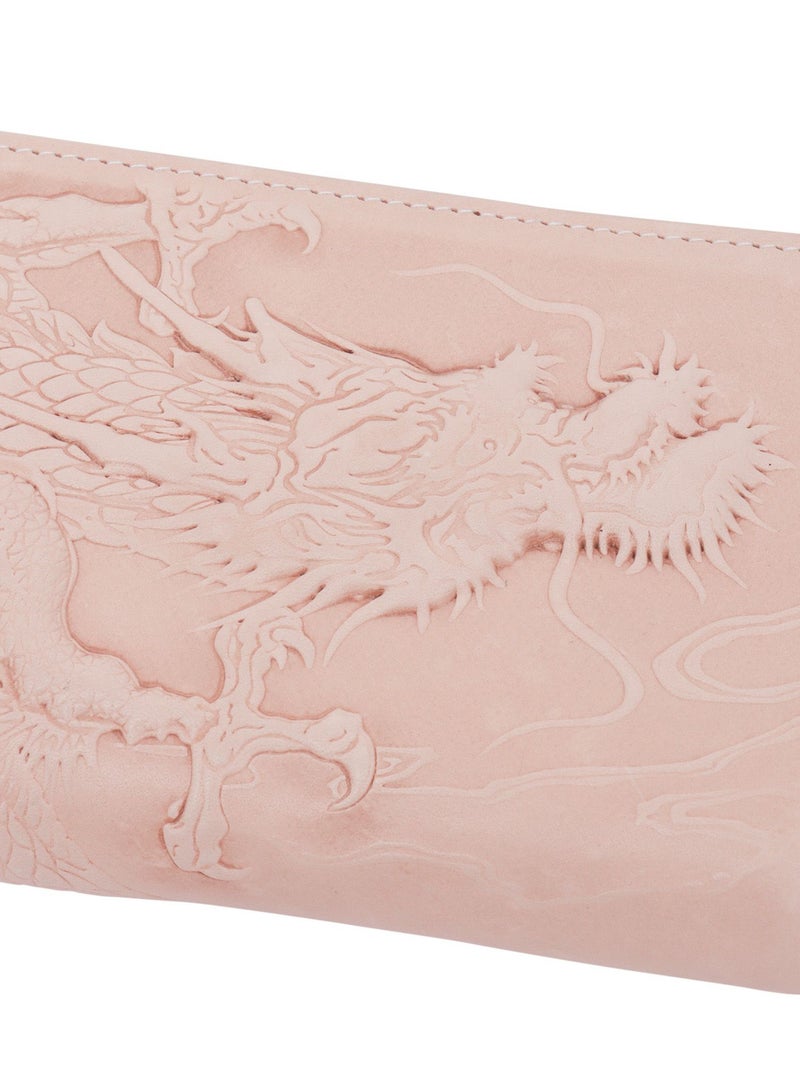 重厚感あふれるリアルレザーに、立体的な龍神をエンボス加工で精緻に描いた一品。