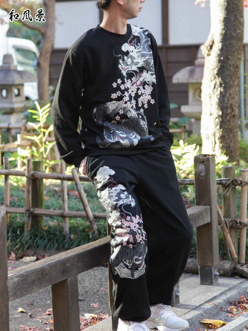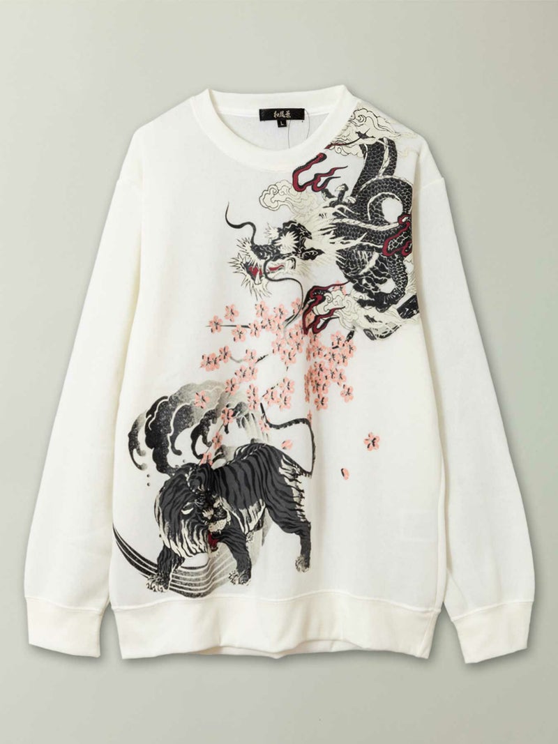 6. 【和風景】“龍虎”プリント入り裏起毛トレーナー≪返品・取寄対応不可≫