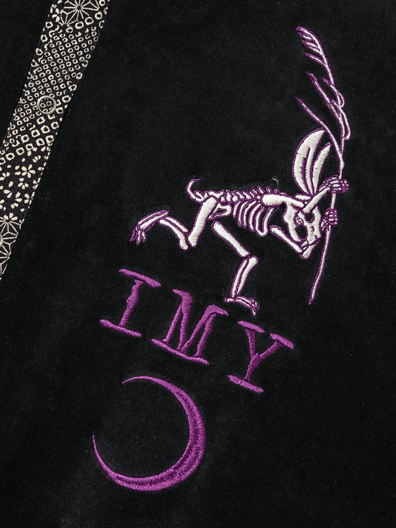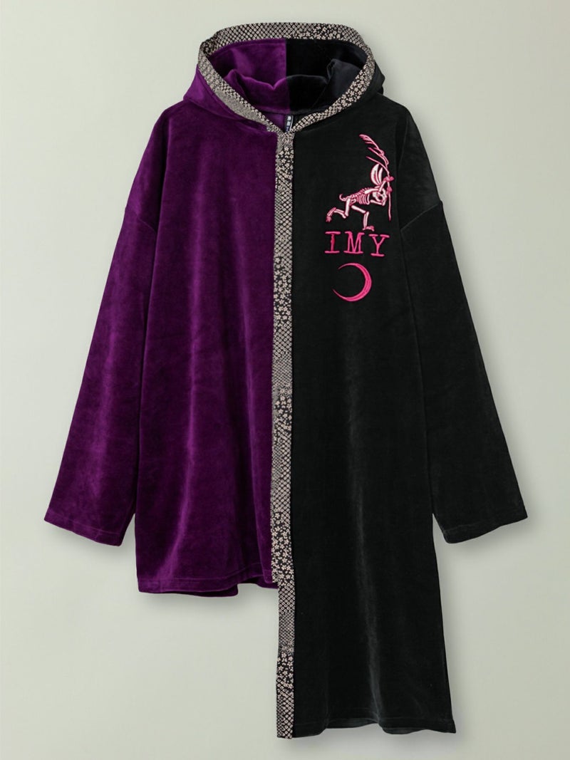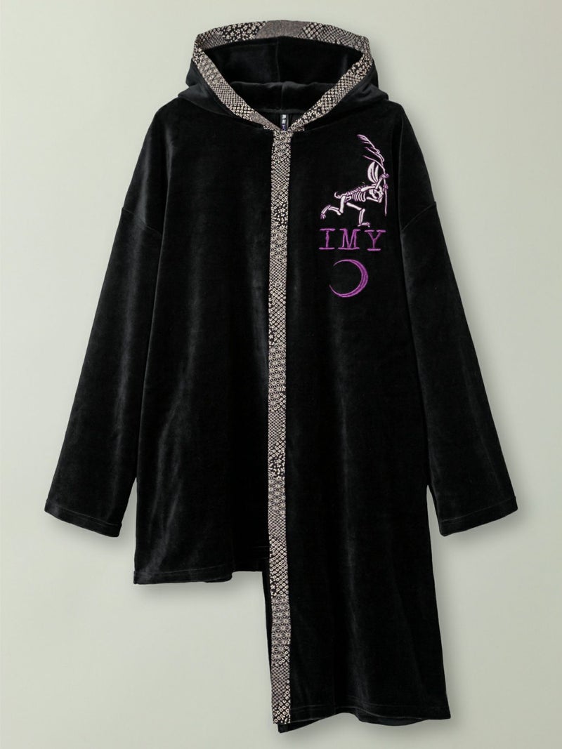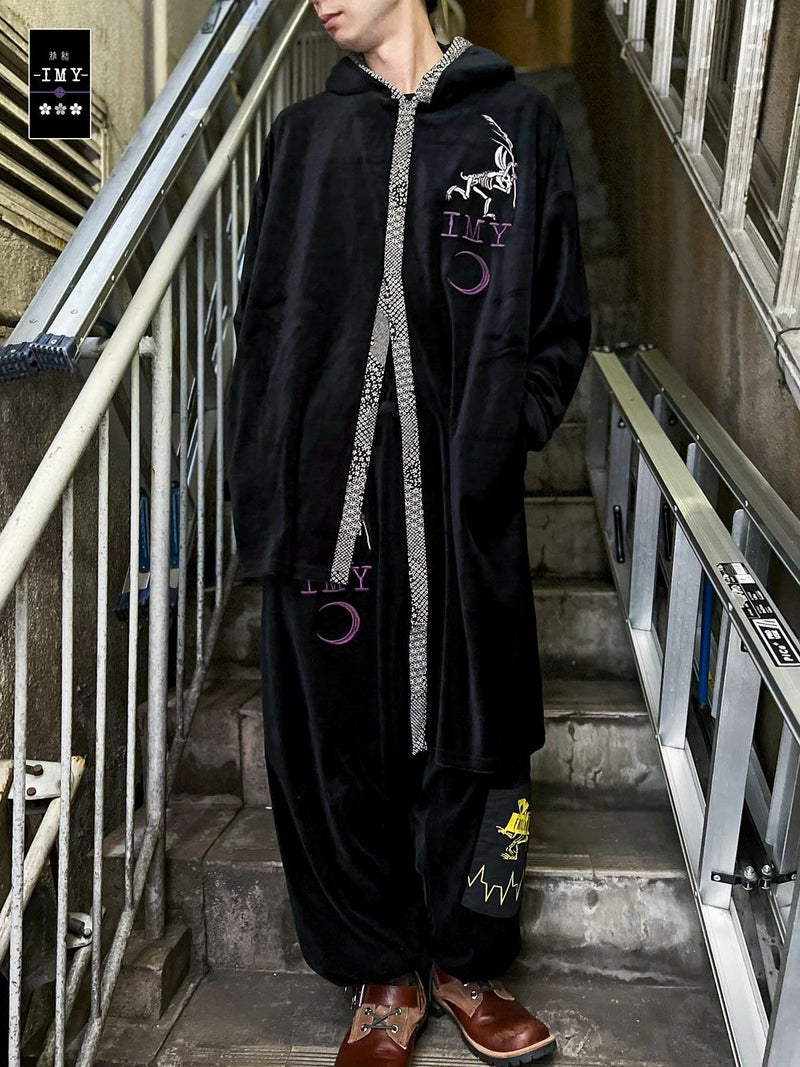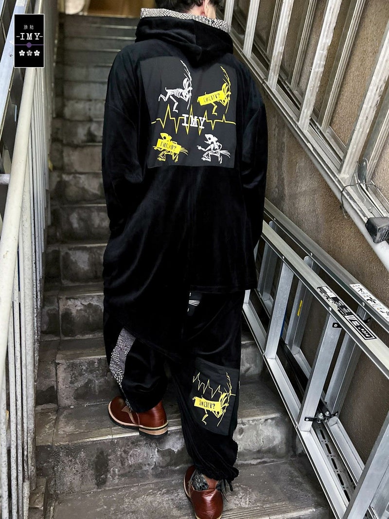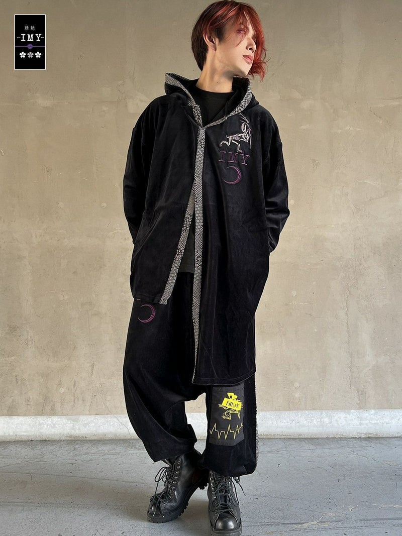 5. ≪30%OFF≫【雅結-IMY-】“レントゲン鳥獣戯画”アシンメトリー切替ベロア素材ロングボタンパーカー≪返品・取寄対応不可≫