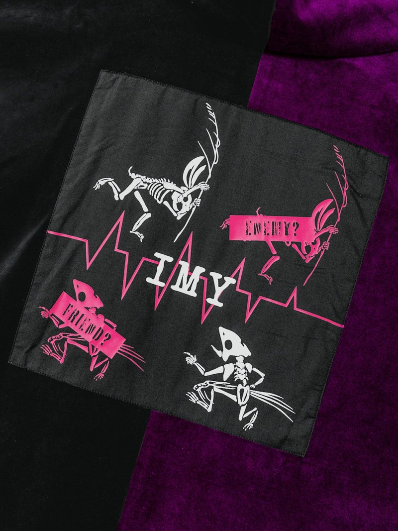 4. ≪30%OFF≫【雅結-IMY-】“レントゲン鳥獣戯画”アシンメトリー切替ベロア素材ロングボタンパーカー≪返品・取寄対応不可≫