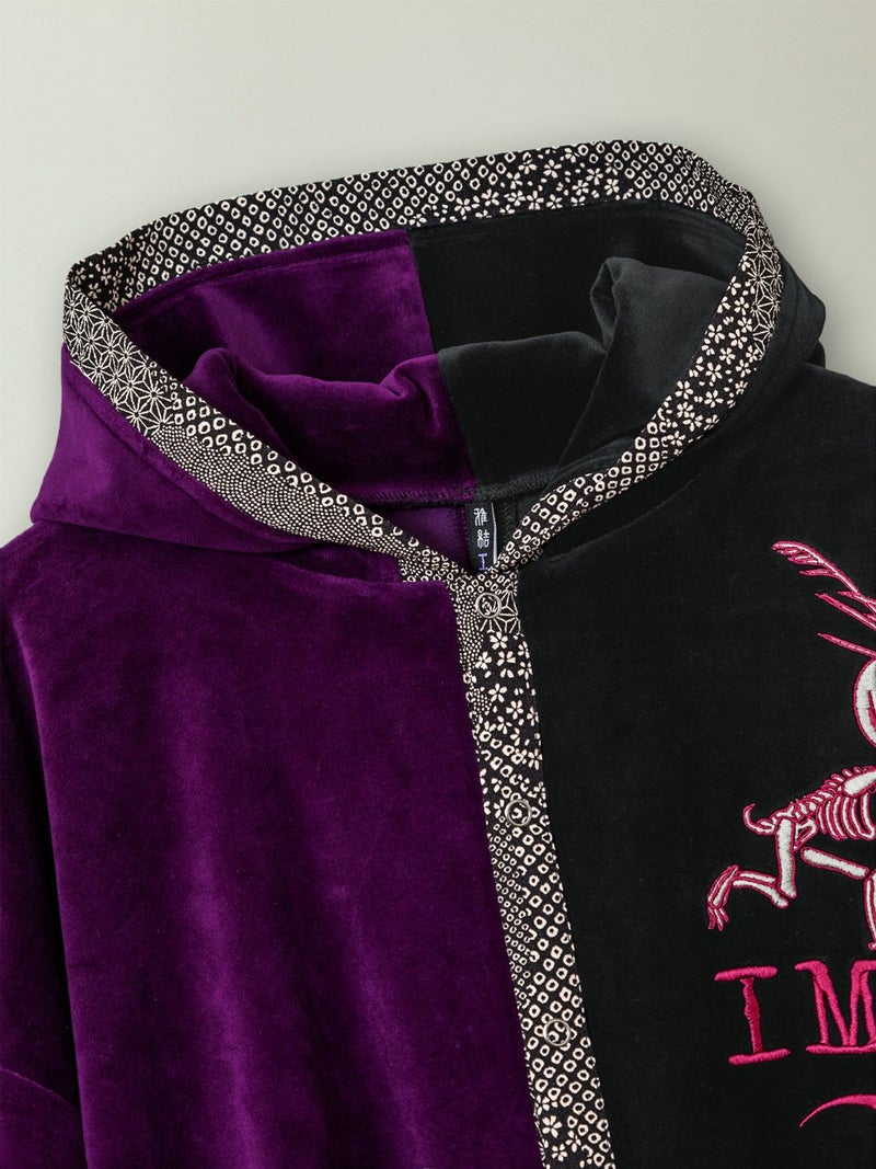 3. ≪30%OFF≫【雅結-IMY-】“レントゲン鳥獣戯画”アシンメトリー切替ベロア素材ロングボタンパーカー≪返品・取寄対応不可≫