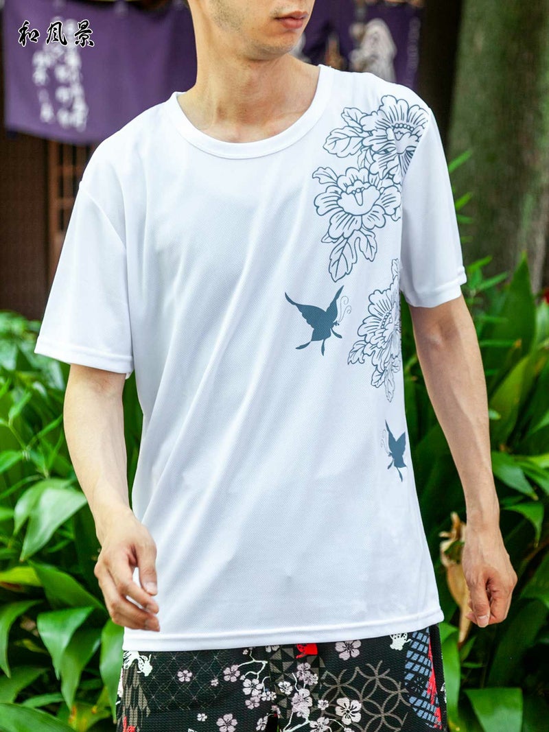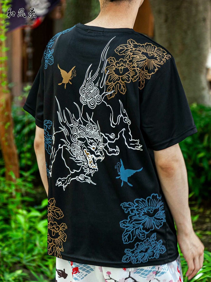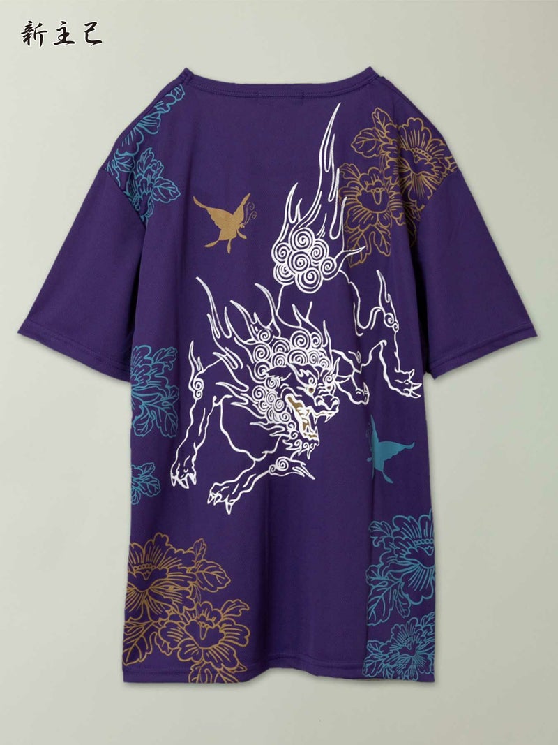 - 【新主己】“獅子と蝶”プリントDRY素材Tシャツ≪返品・取寄対応不可≫