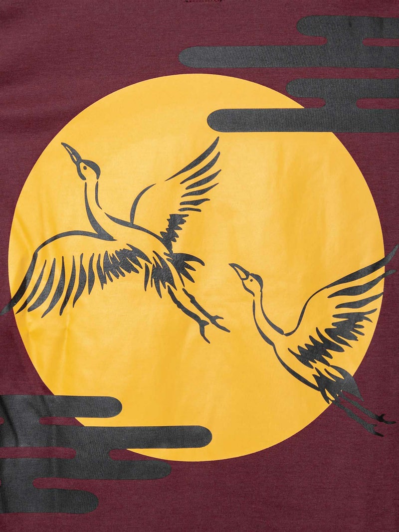 - ≪30%OFF≫【雅結】“月と鶴”刺繍入りプリントロンT≪返品・取寄対応不可≫