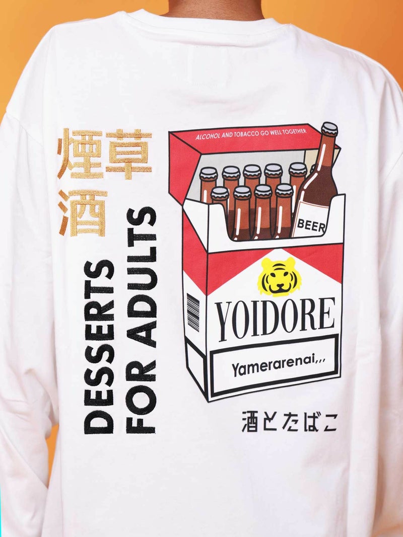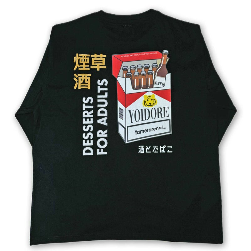 - ≪30%OFF≫【YOIDORE】“酒とタバコ”刺繍入りプリントロンT≪返品・取寄対応不可≫