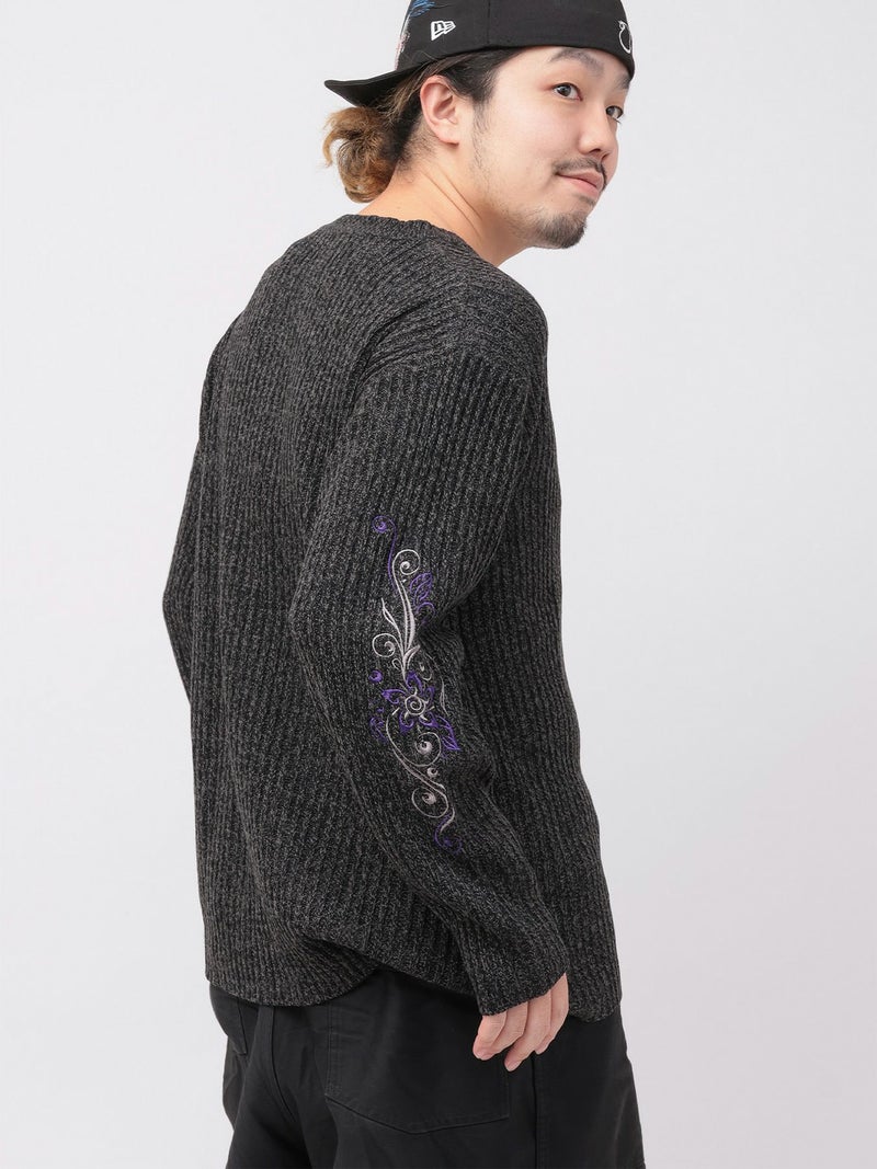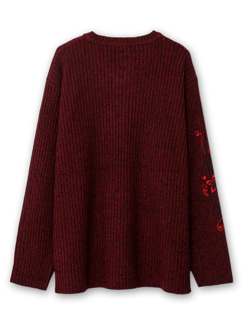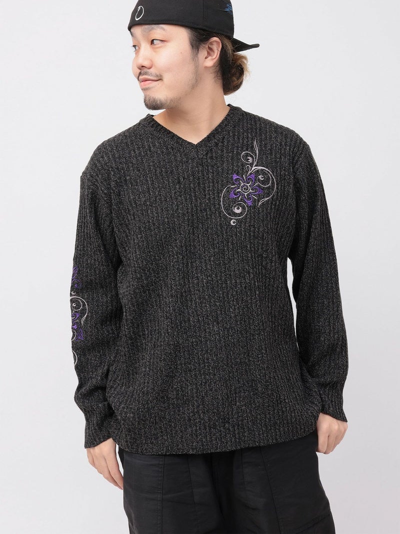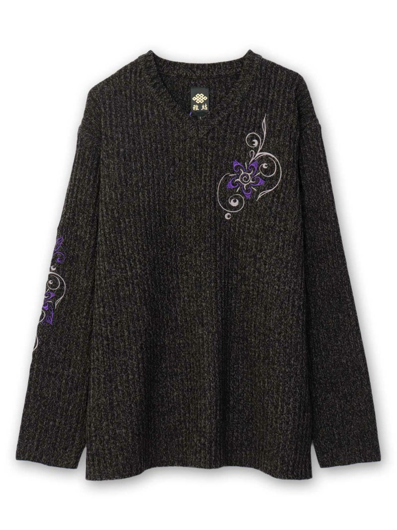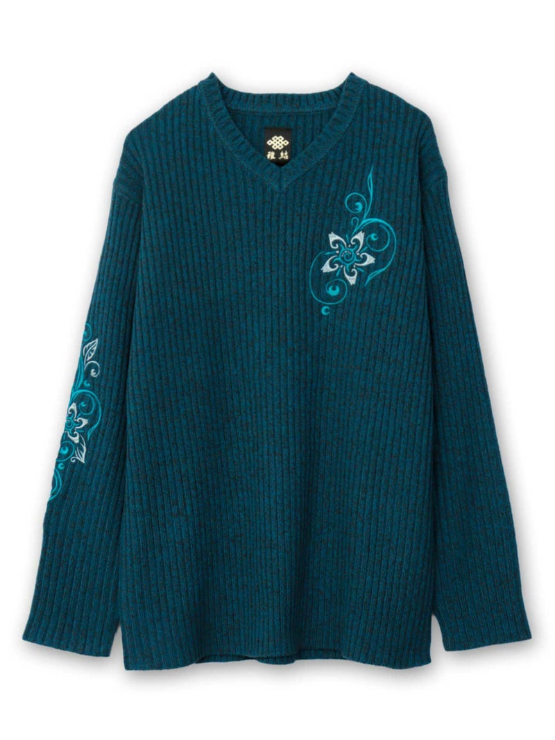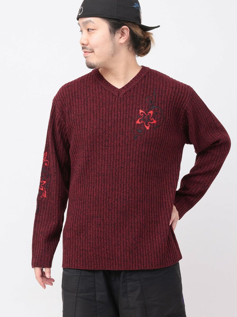 - ≪22%OFF≫【雅結】トライバル桜刺繍 Vネックリブニット≪返品・取寄対応不可≫