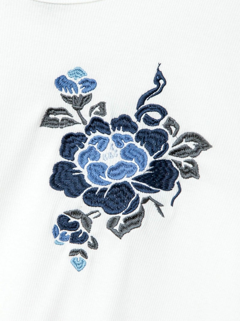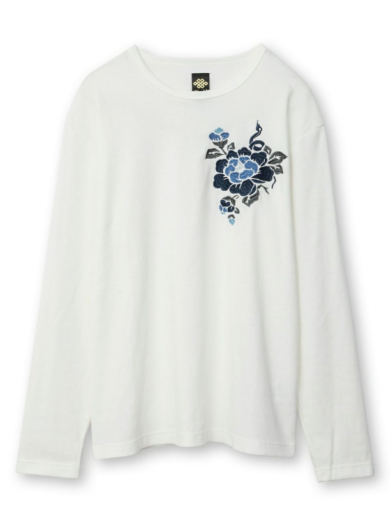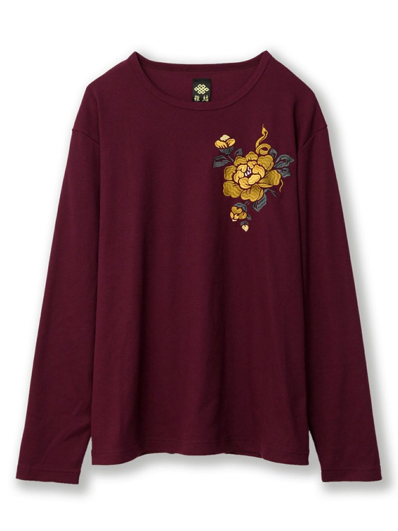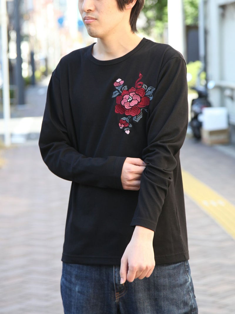 - ≪30%OFF≫【雅結】蛇と牡丹刺繍 テレコ素材ロンT≪返品・取寄対応不可≫