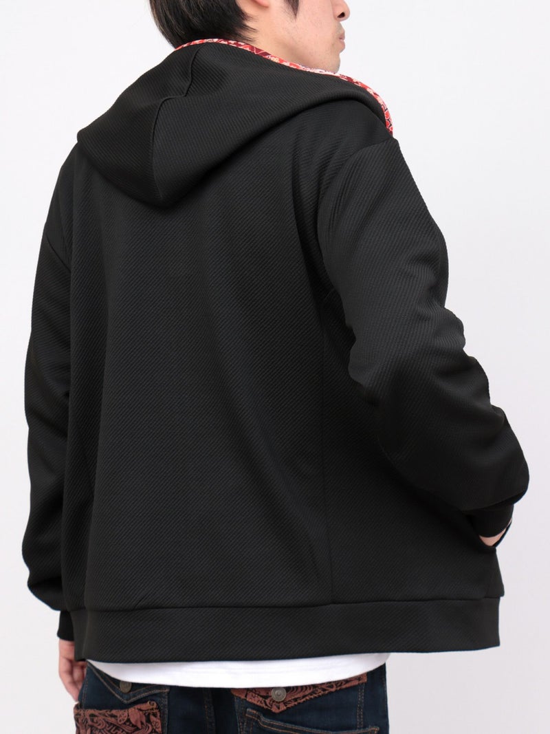 - ≪25%OFF≫【雅結】桜刺繍ふくれジャガード素材 和生地遣いZIPパーカー≪返品・取寄対応不可≫