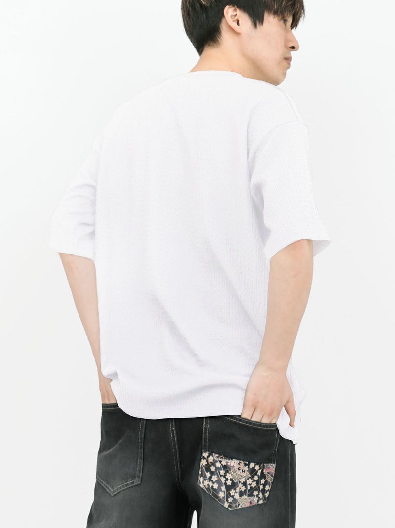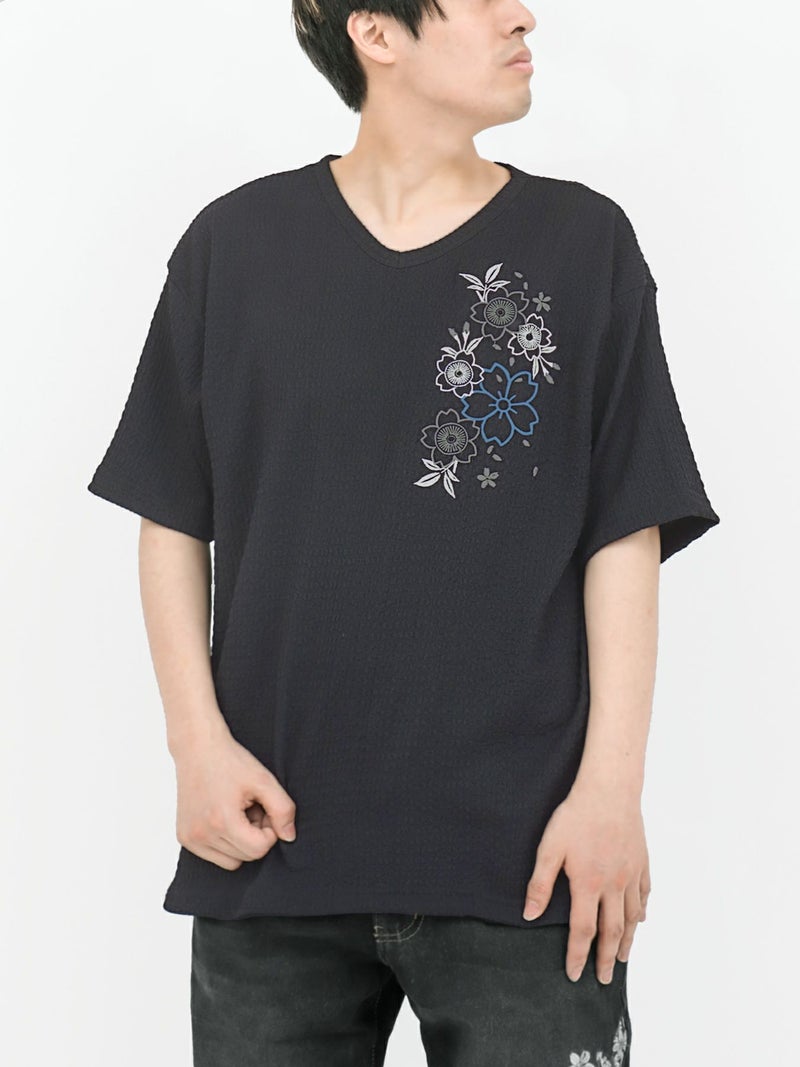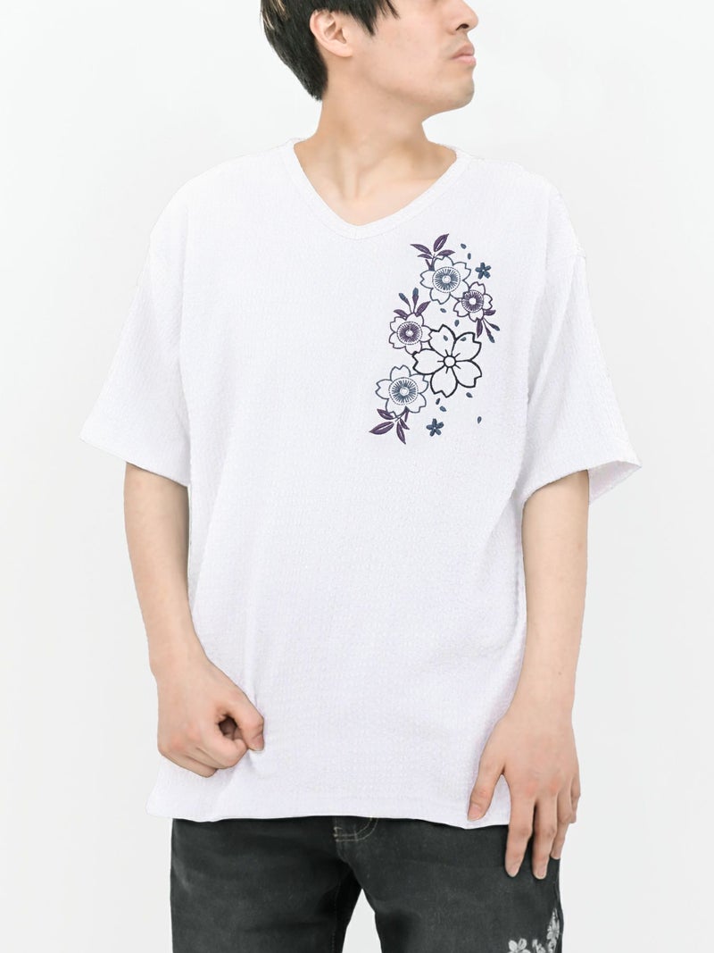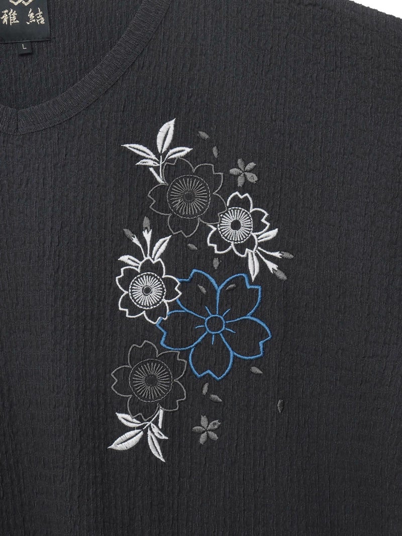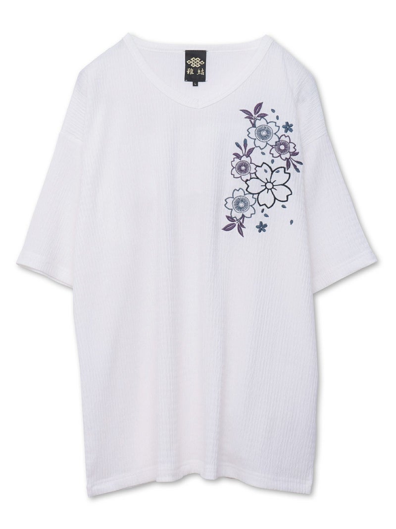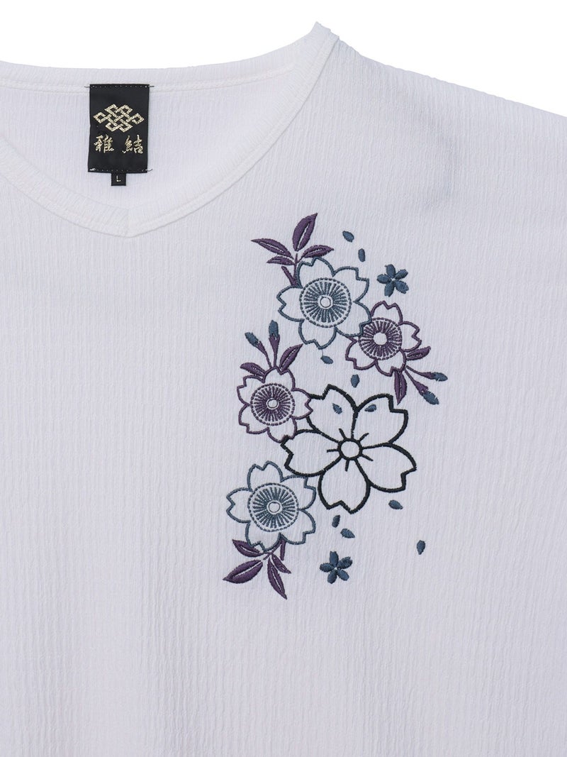 4. 【雅結】桜刺繍 楊柳生地VネックTシャツ