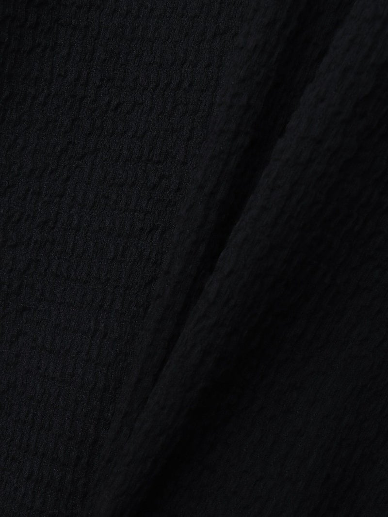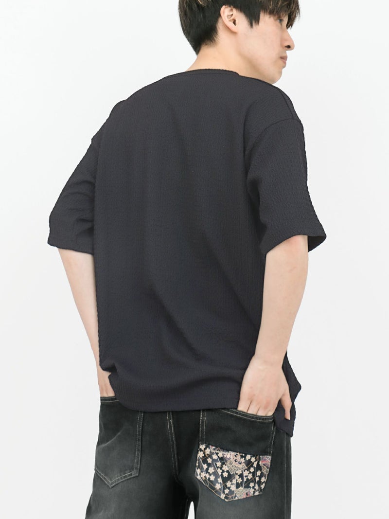 緯糸に強撚糸を使うことにより立体感を生み出した生地はサラッとした肌触りで、吸汗性や速乾性にも優れた快適な着心地。