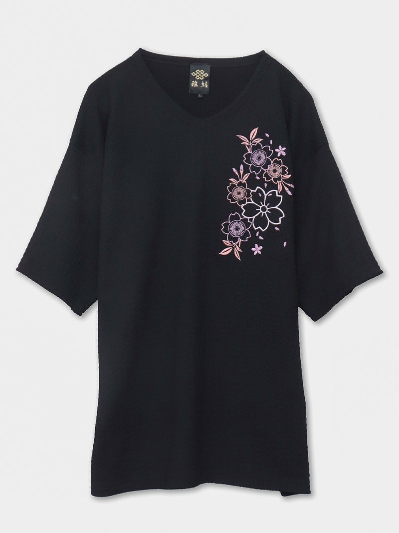 3. 【雅結】桜刺繍 楊柳生地VネックTシャツ