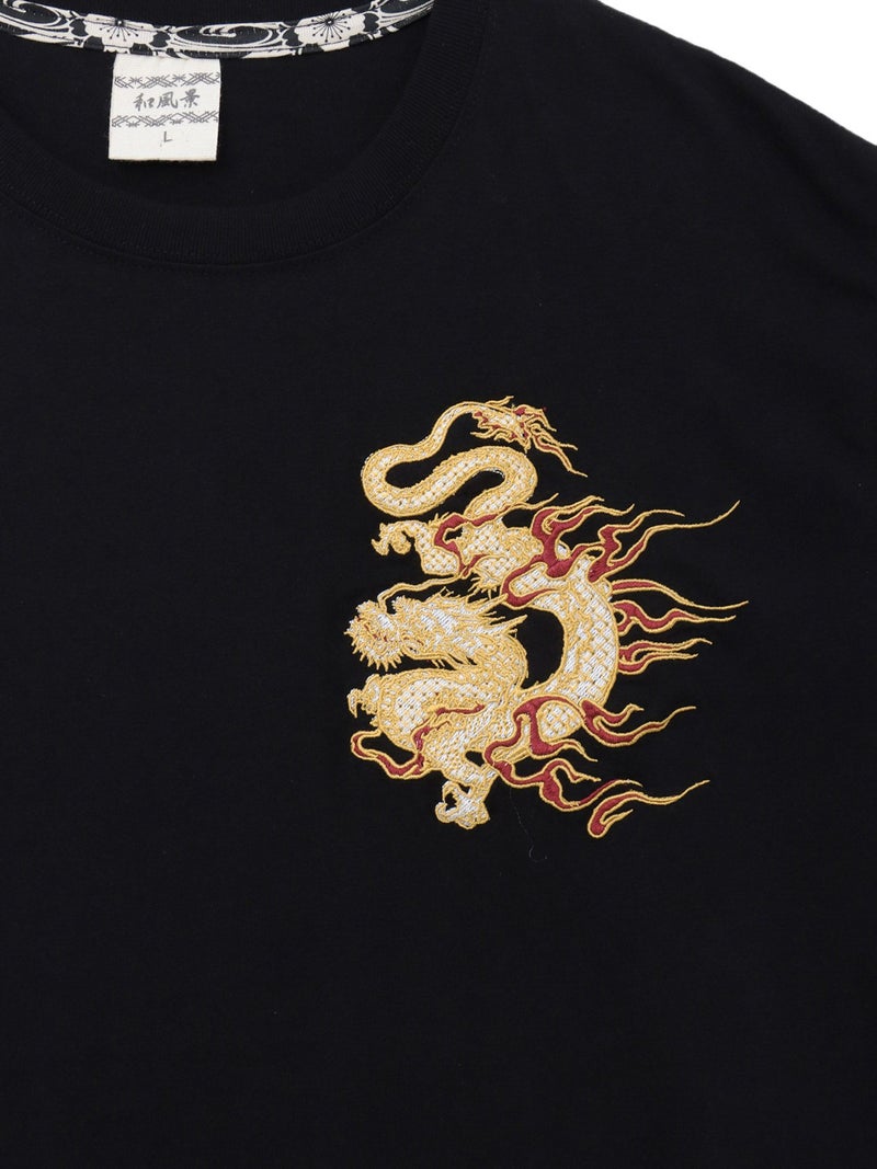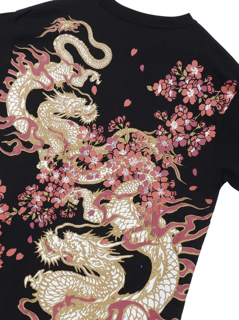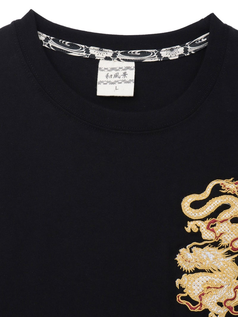 - ≪28%OFF≫【和風景】双龍刺繍入りプリントTシャツ≪返品・取寄対応不可≫