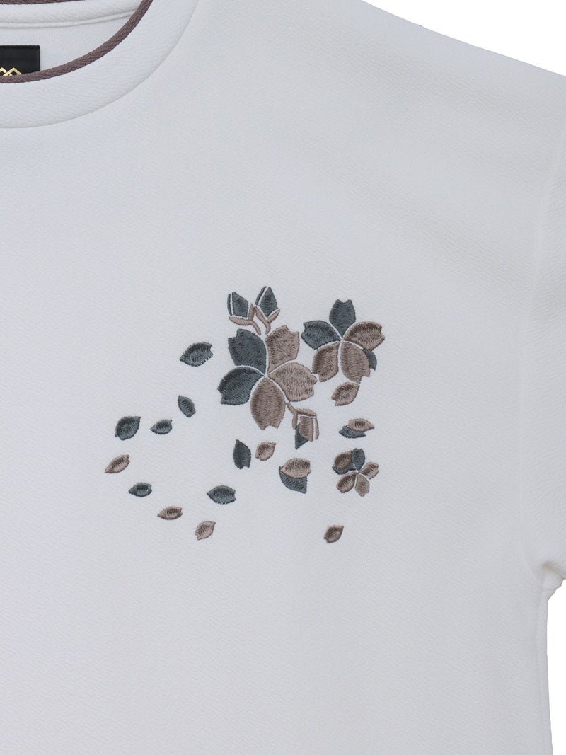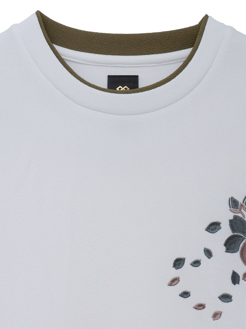 - ≪32%OFF≫【雅結】桜刺繍梨地素材 切り替えTシャツ≪返品・取寄対応不可≫