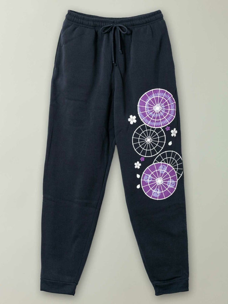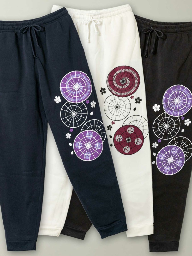 “番傘と桜”プリント入り裏起毛スウェットパンツ≪返品・取寄対応不可≫