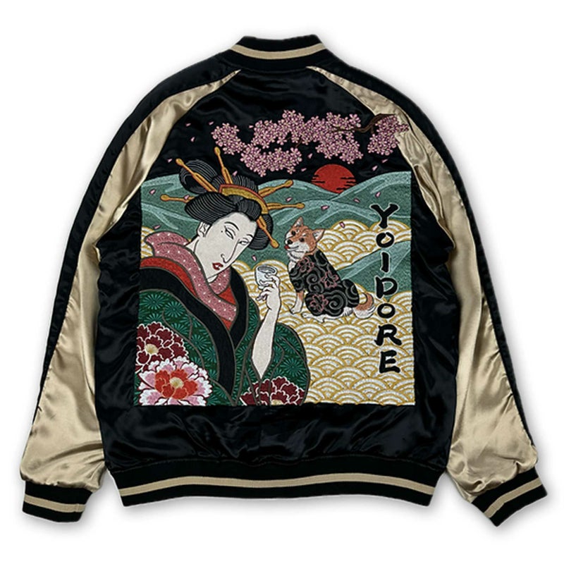 - ≪30%OFF≫【YOIDORE】“浮世絵:舞妓と犬”総刺繍リバーシブルスカジャン≪返品・取寄対応不可≫