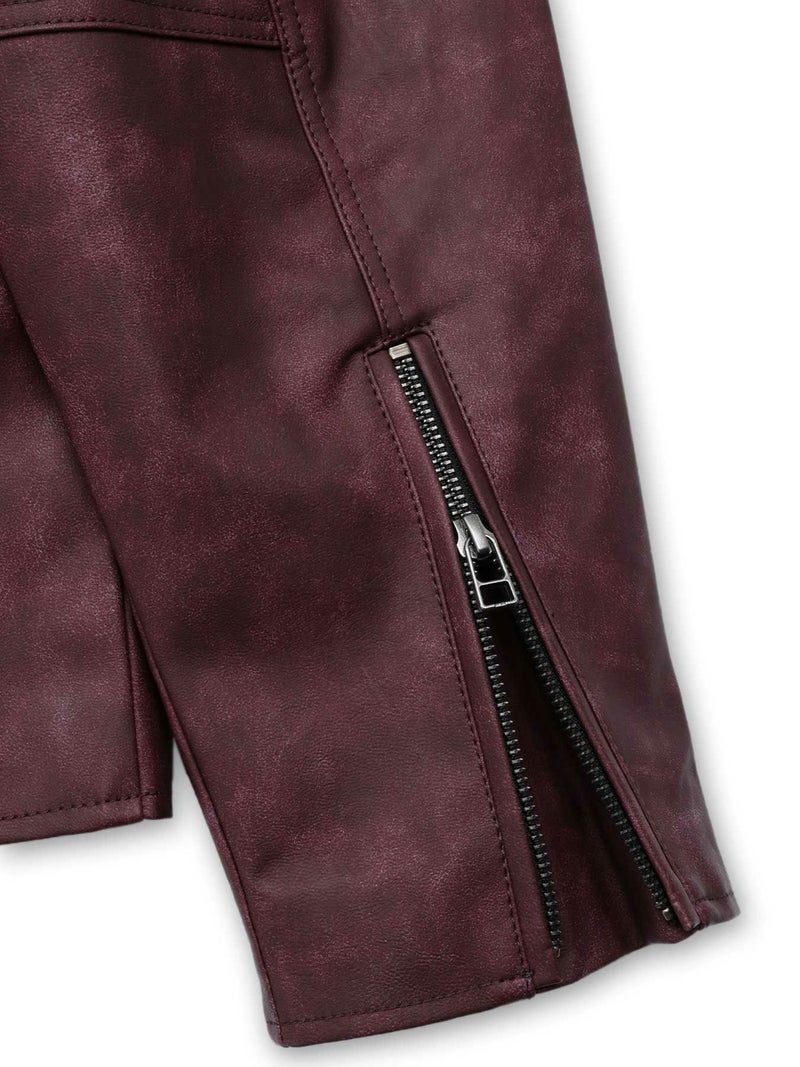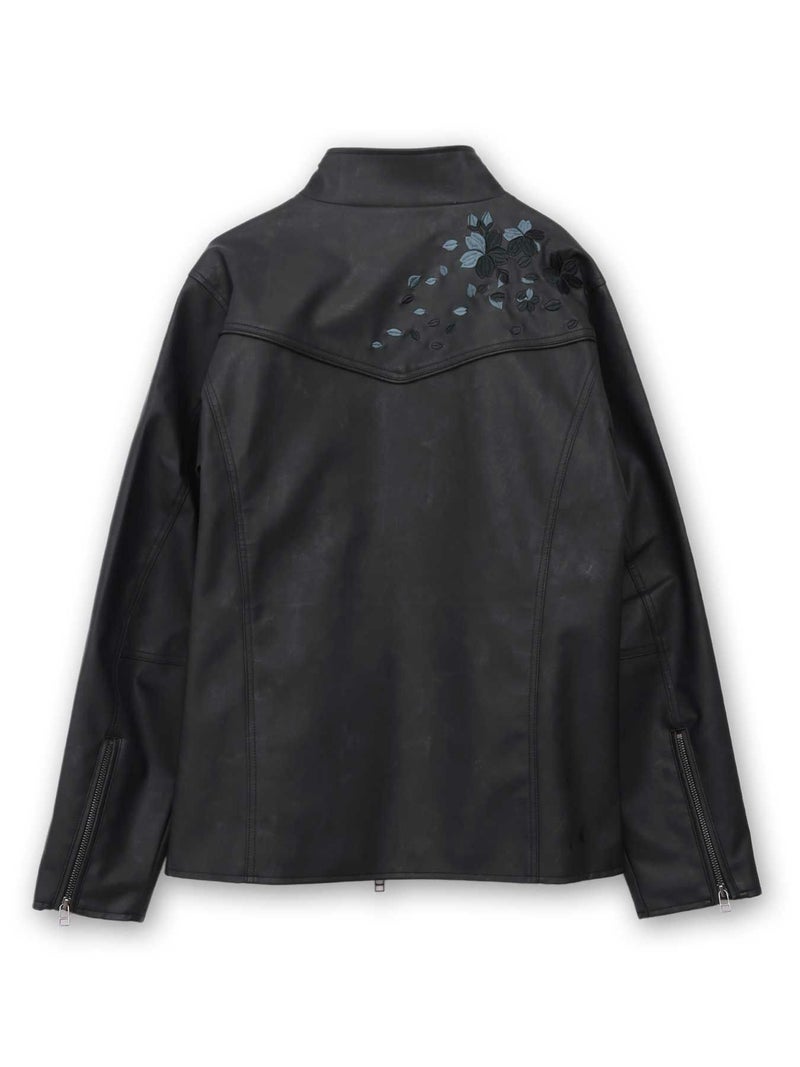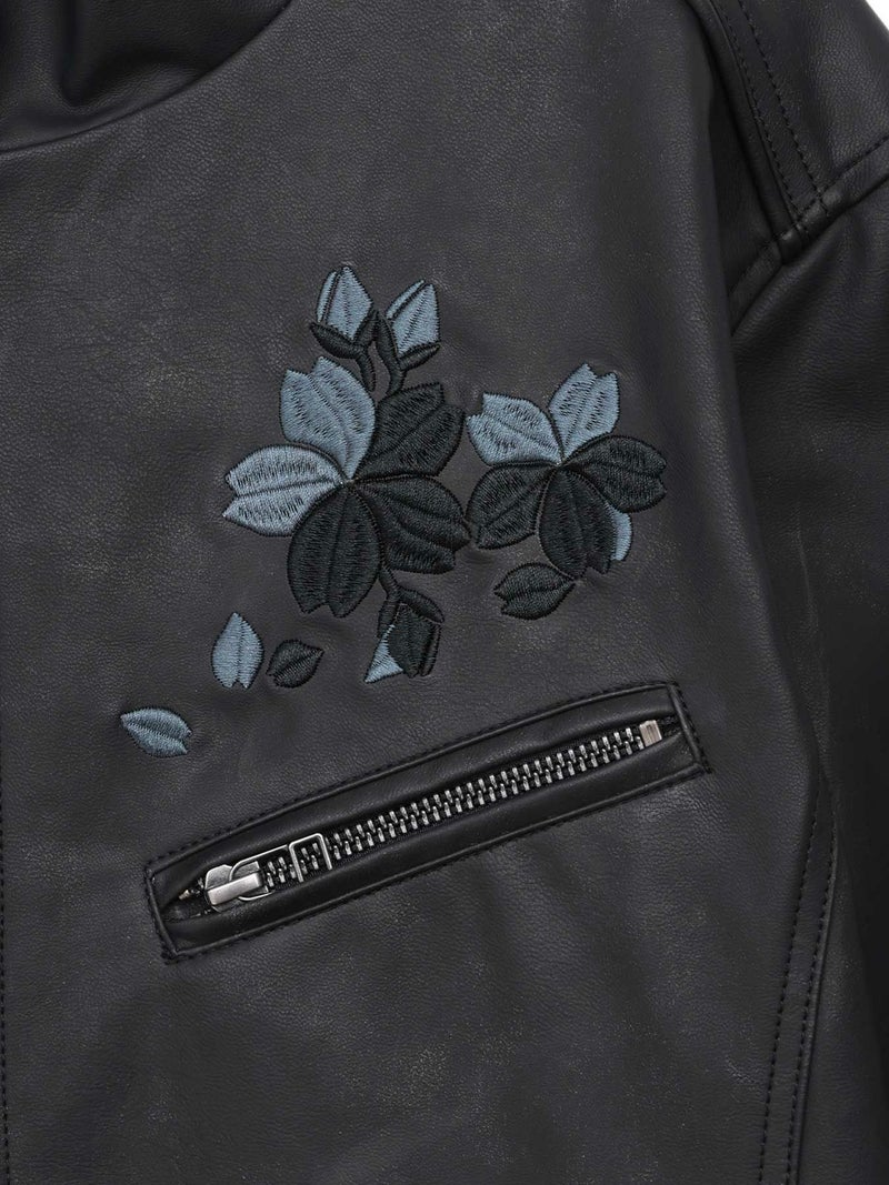- 【雅結】桜刺繍フェイクレザー シングルライダースジャケット