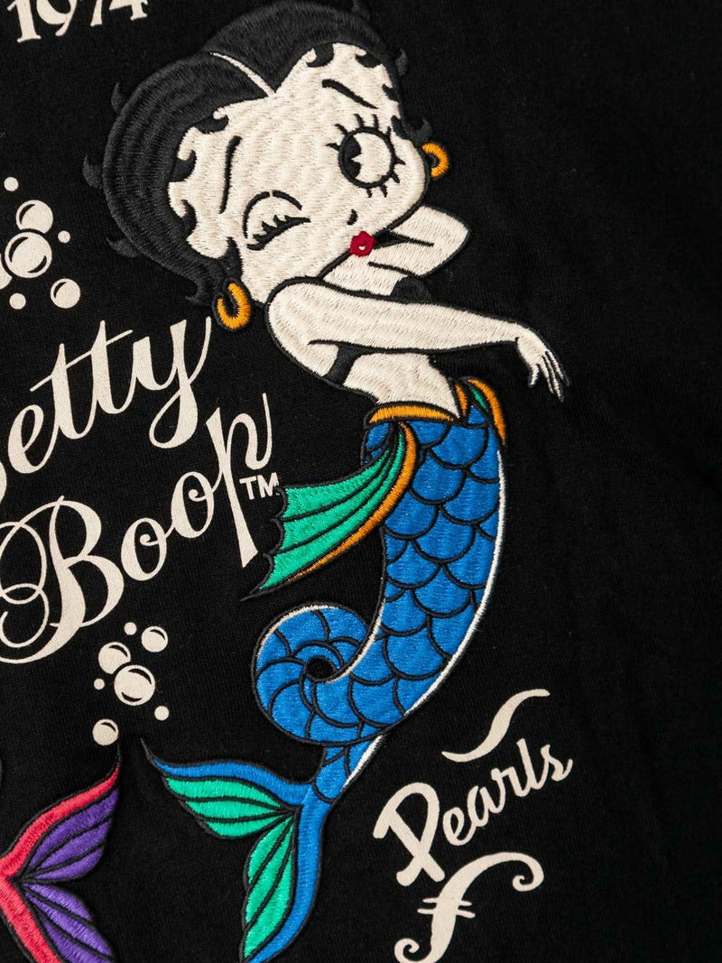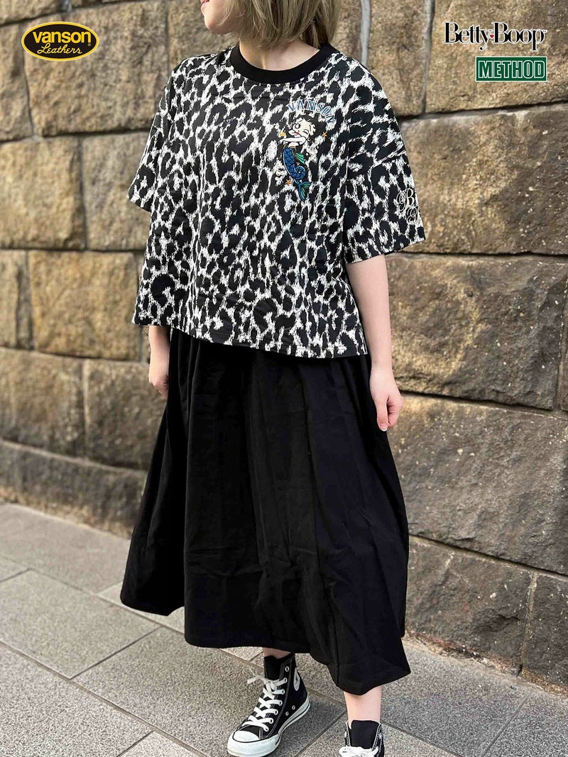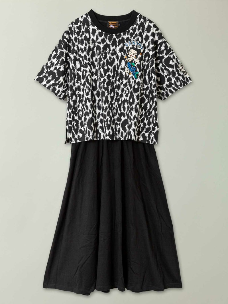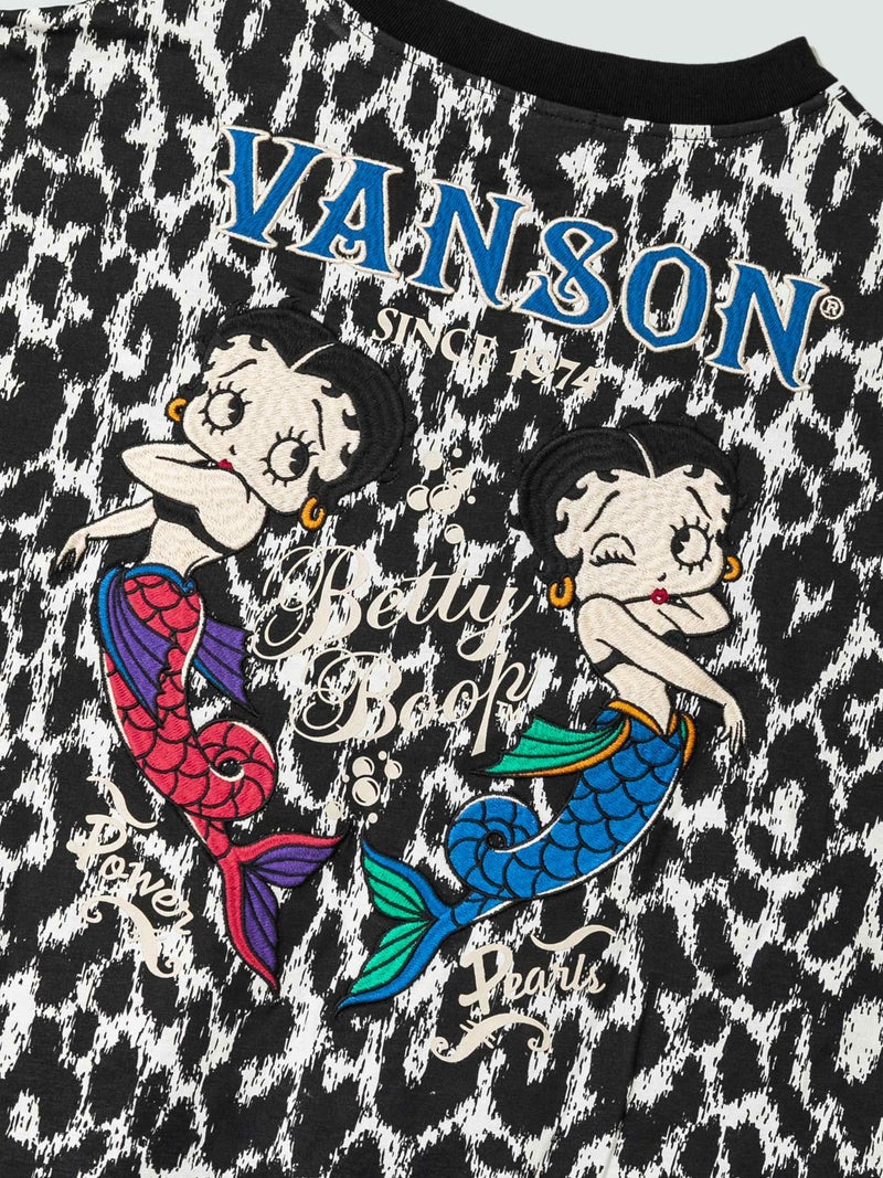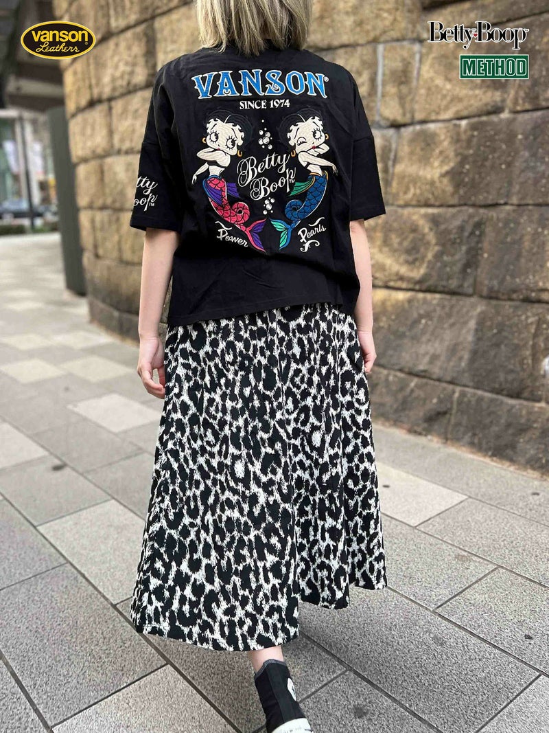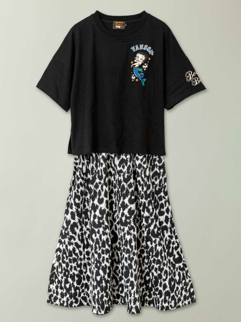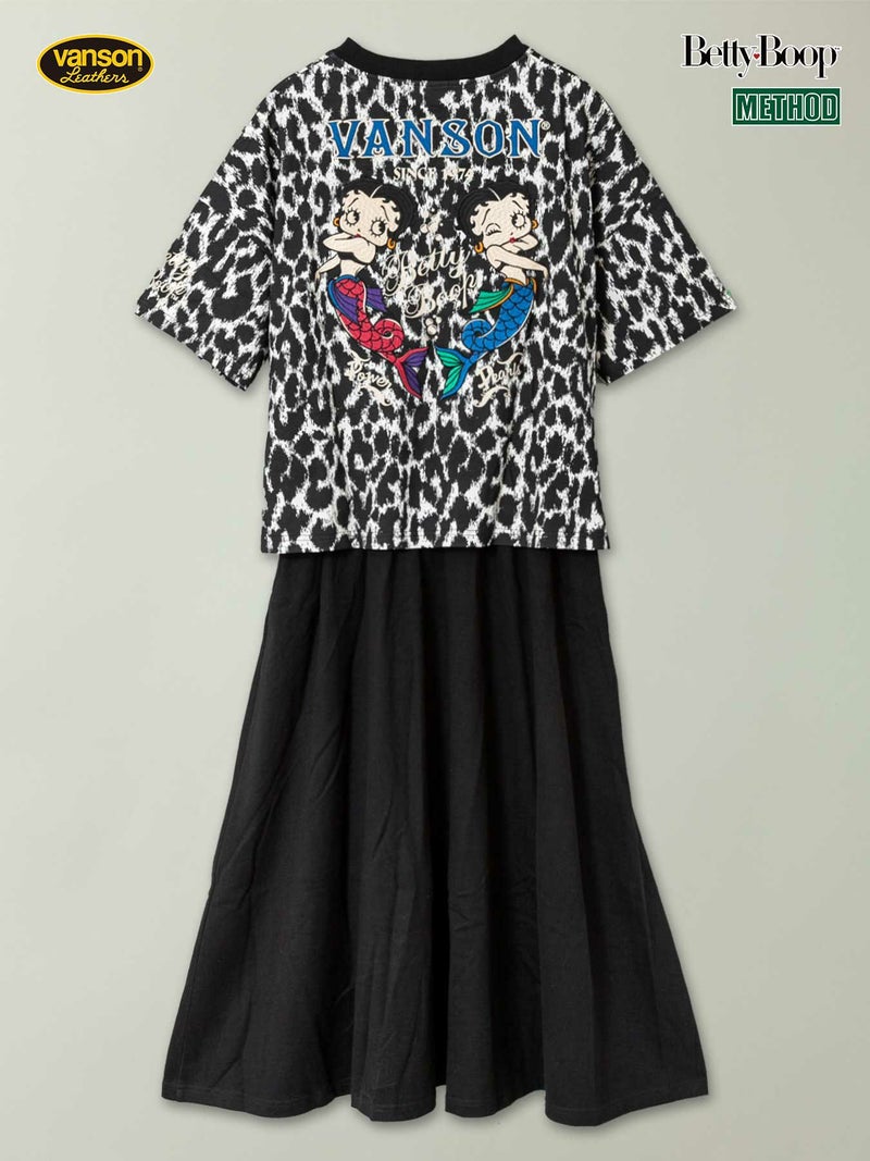 - ≪50%OFF≫【VANSON×BETTYBOOP】“マーメイドベティ”刺繍入りフェイクレイヤード半袖ワンピース〔別注〕≪返品・取寄対応不可≫