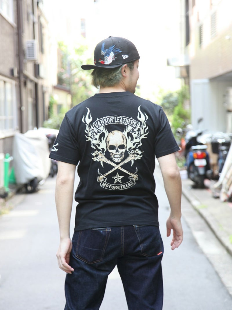 5. 【VANSON】“スカルファイヤー”刺繍入りTシャツ