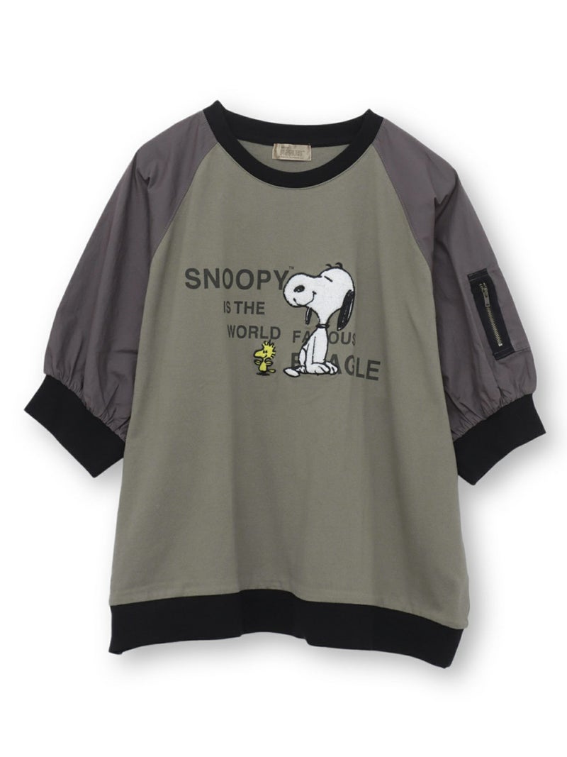- ≪20%OFF≫【JUICY×PEANUTS】“VINTAGE SNOOPY”サガラ刺繍 袖切替Tシャツ〔別注〕≪返品・取寄対応不可≫