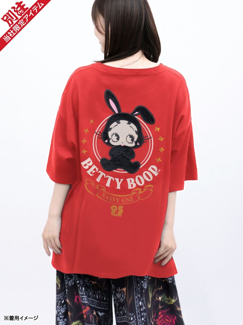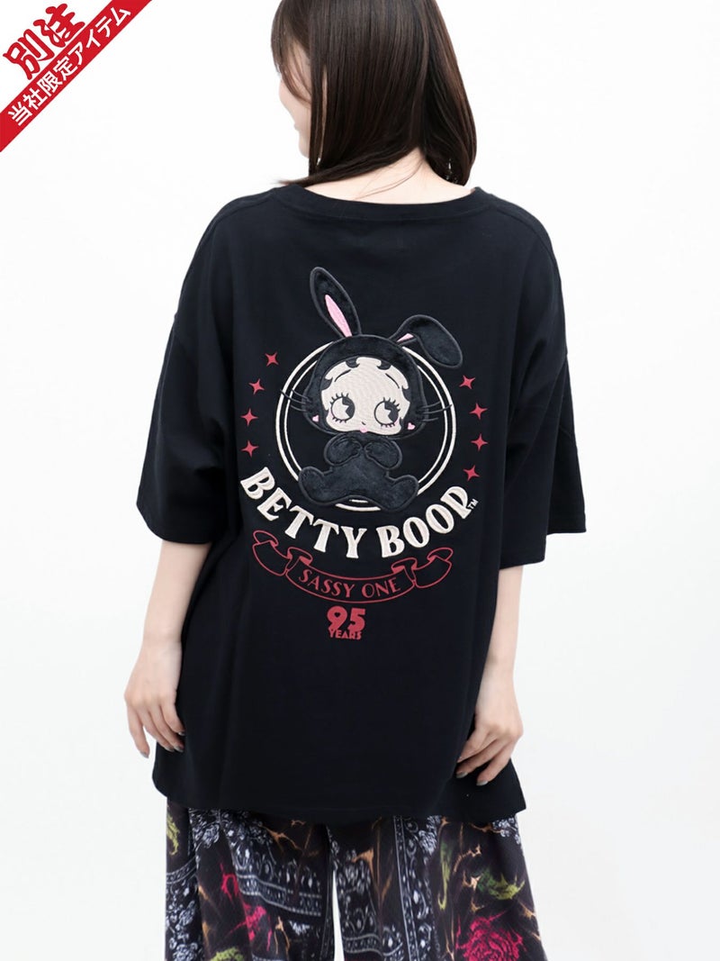 - 【BETTY BOOP】“黒うさぎベイビーベティ”刺繍入りTシャツ〔別注〕