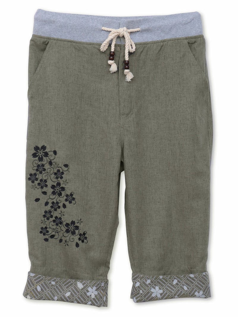 - ≪30%OFF≫【雅結】桜唐草刺繍シャンブレー素材クロップドパンツ≪返品・取寄対応不可≫