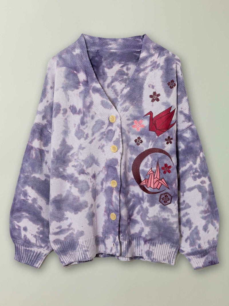 - ≪30%OFF≫【雅結】折り鶴刺繍タイダイ染めニットカーディガン≪返品・取寄対応不可≫