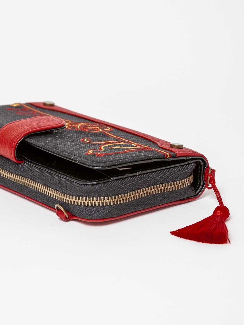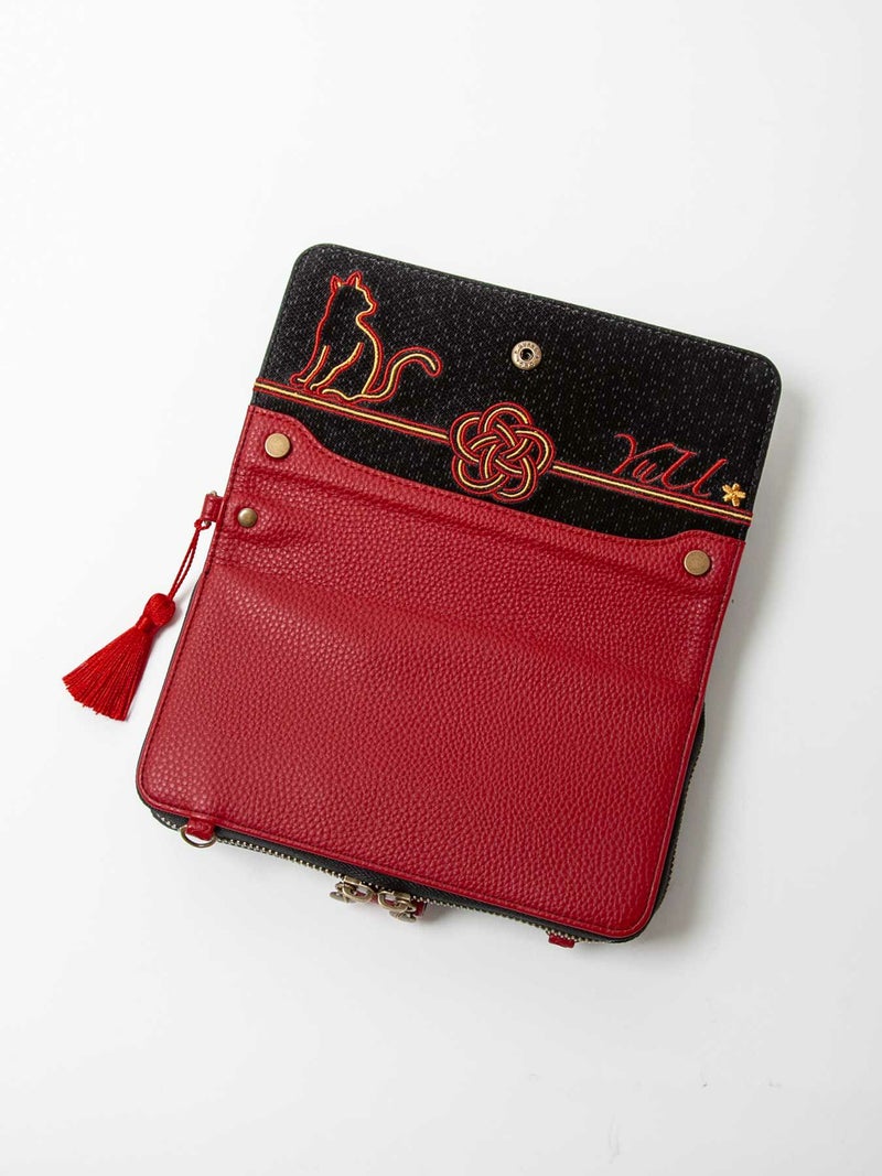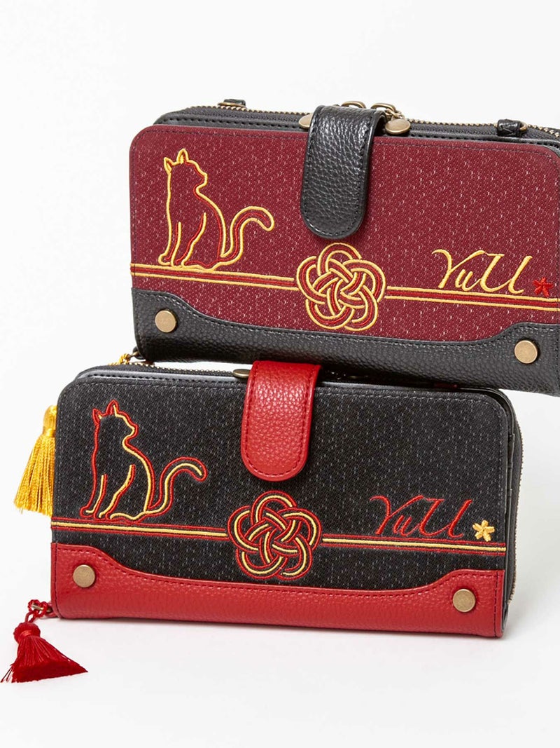- 【雅結 -YuU-】猫と水引刺繍 2WAYウォレットショルダーバッグ