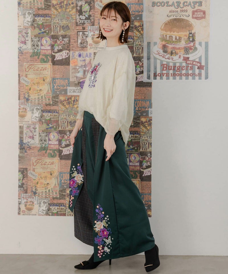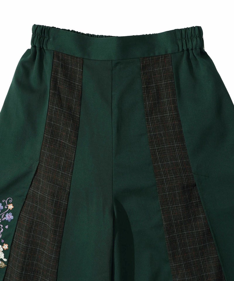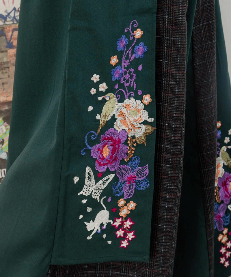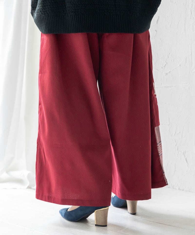 - ≪20%OFF≫【雅結×iS ScoLar】コラボ 和風刺繍チェック切替パンツ≪返品・取寄対応不可≫