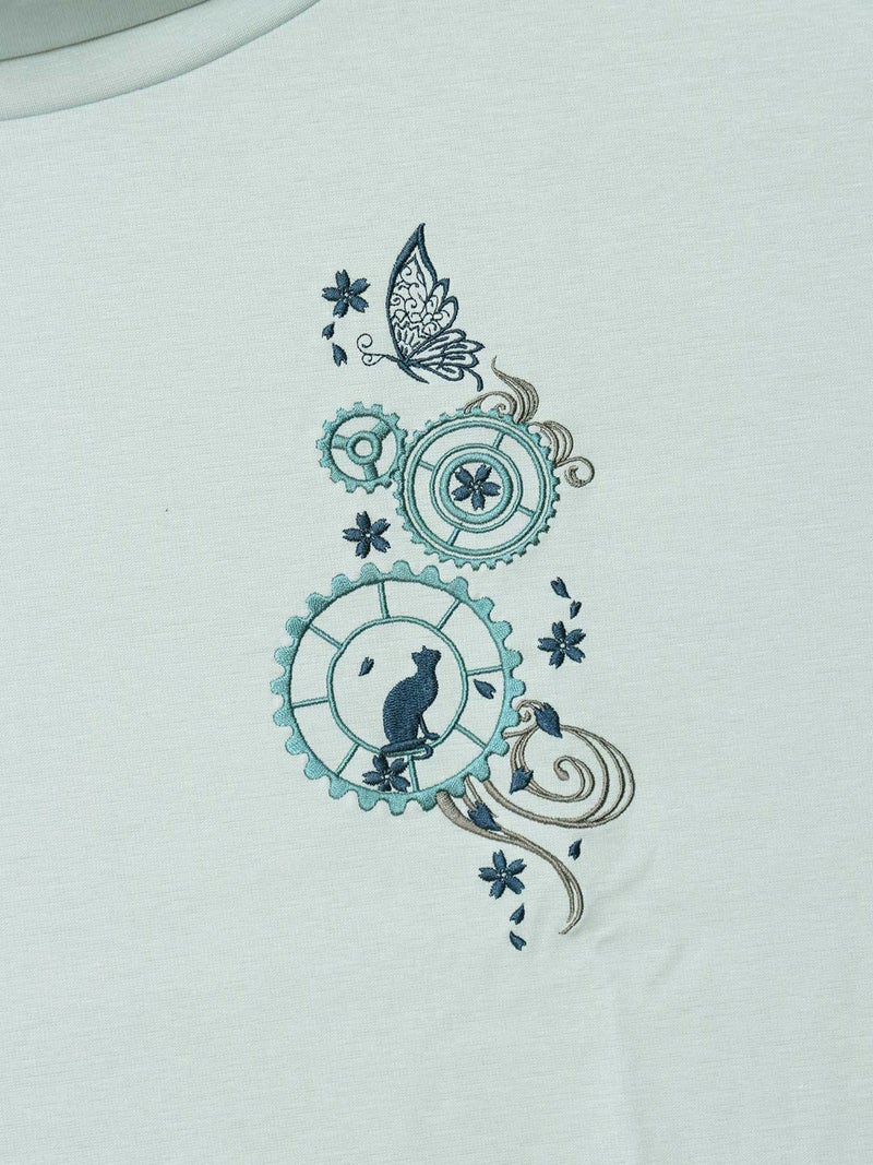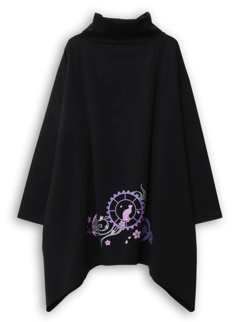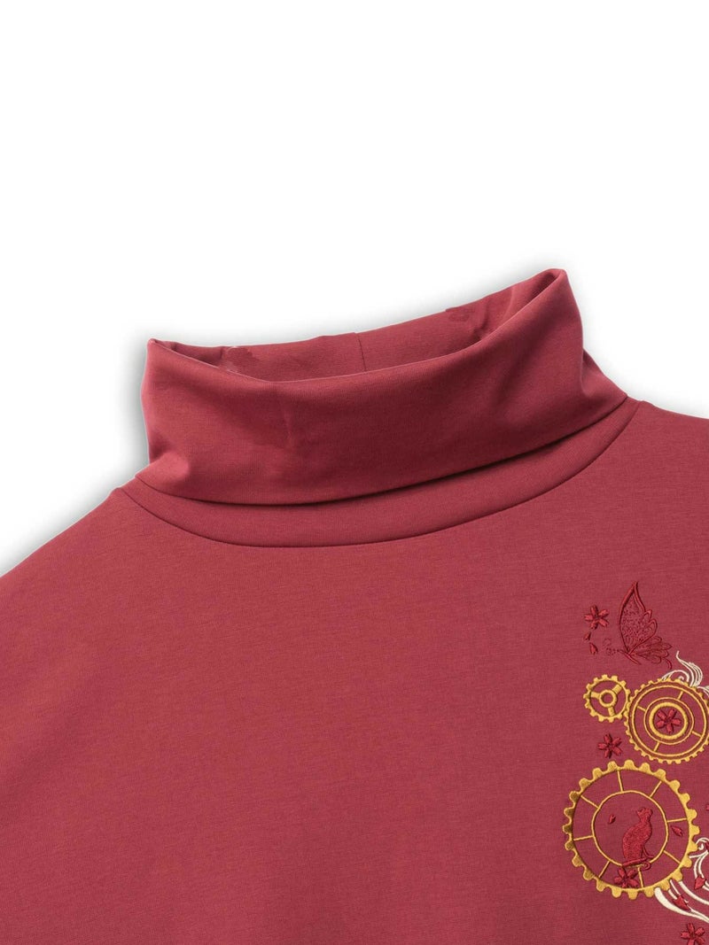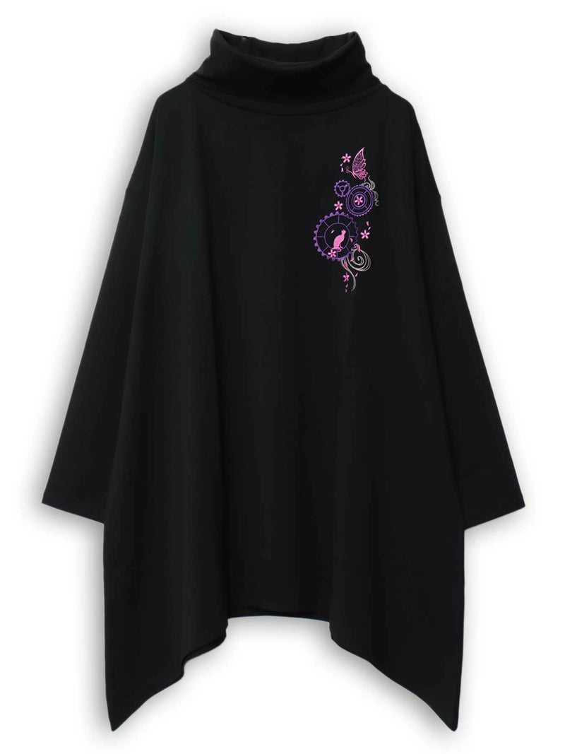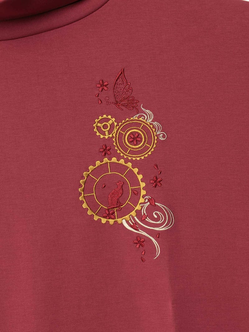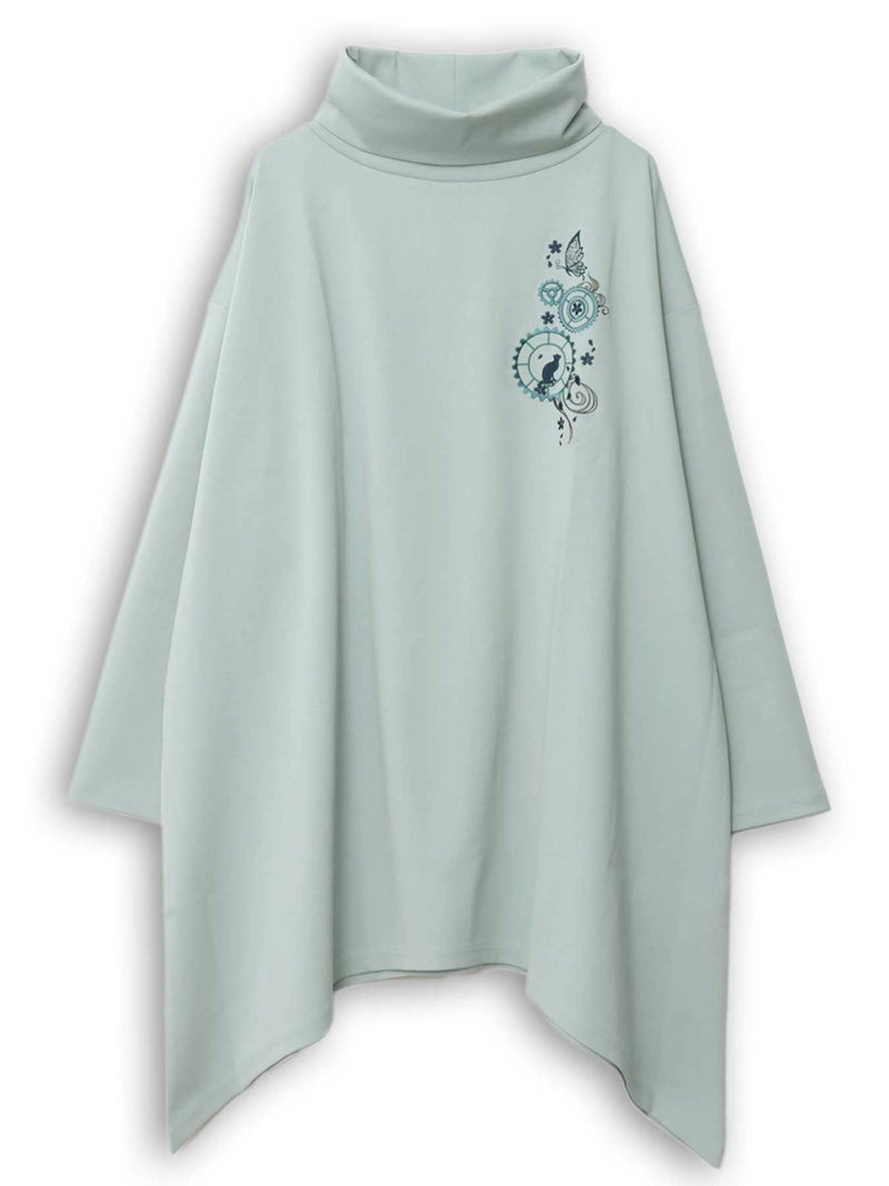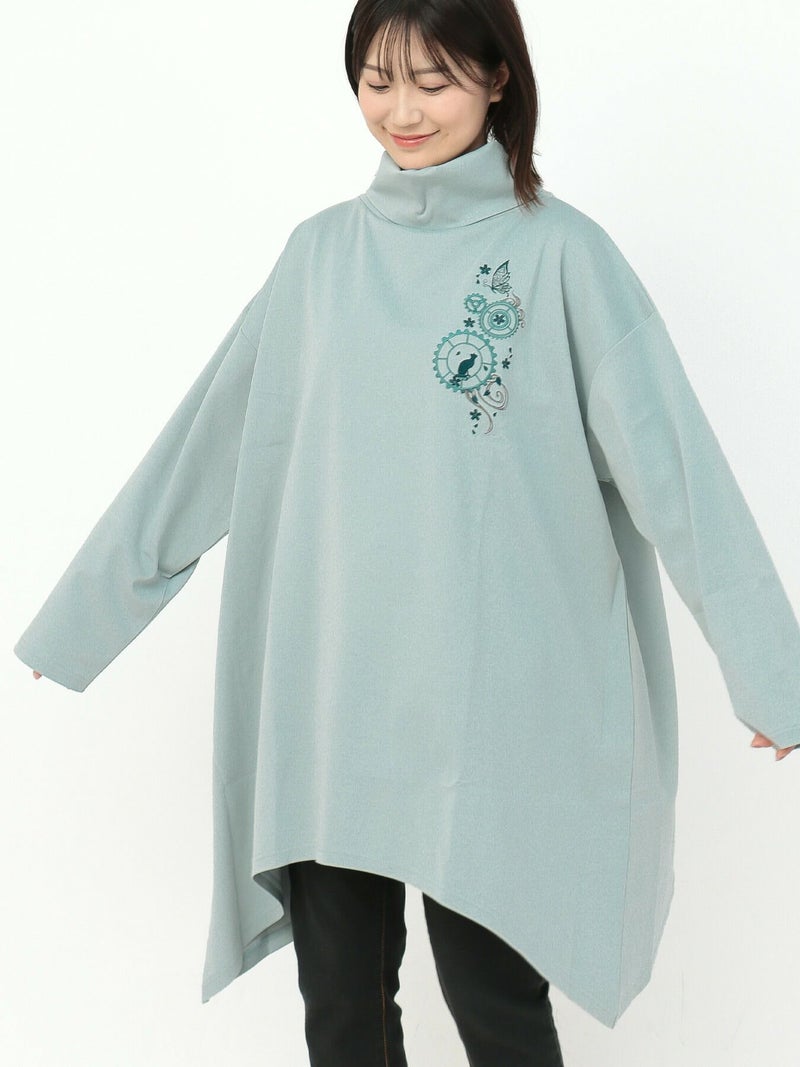 - 【雅結 -YuU-】猫と歯車刺繍オフタートルイレヘムチュニック