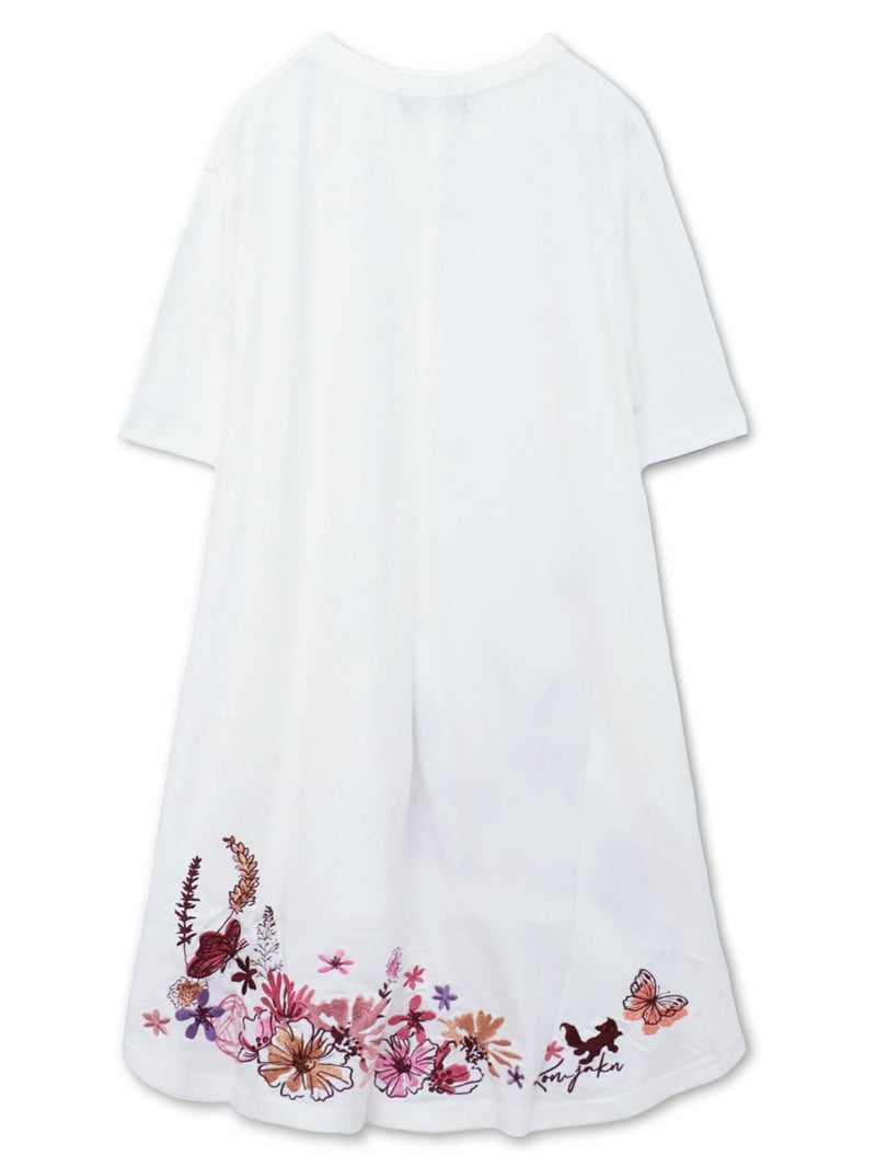『手毬と花』をモチーフにした今作は、裾部分を中心に手毬と様々な花々を総刺繍で描きました。 甘い雰囲気の色遣いと柔らかなモチーフで構成された、とても可愛らしい仕上がりに。 余白部分を多く残しているので、ブランドお得意の凝りに凝った緻密な刺繍がより「映える」デザインです。