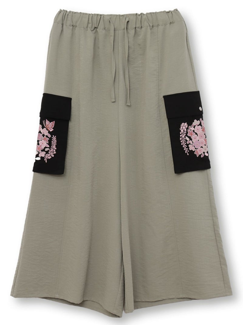 - ≪30%OFF≫【雅結】“桜藤紅葉”総刺繍ワイドカーゴパンツ≪返品・取寄対応不可≫