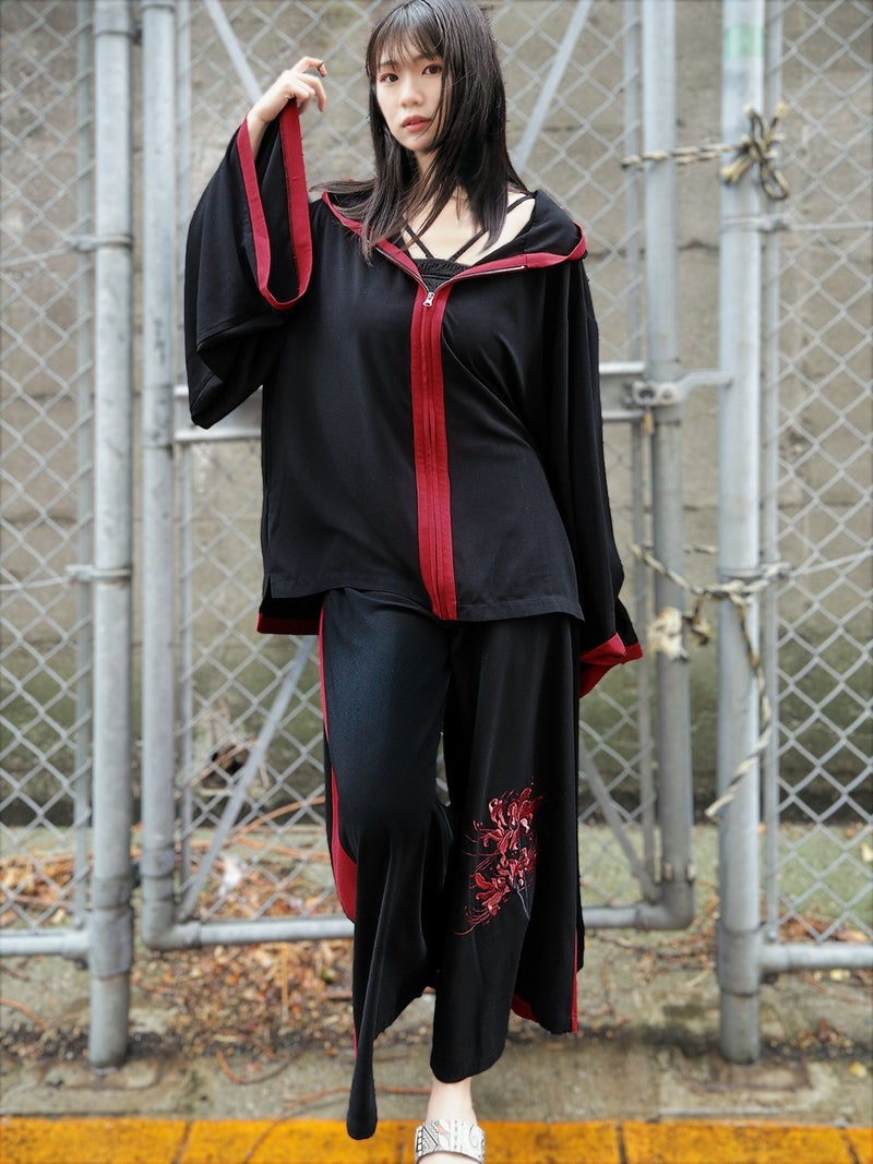 - ≪14%OFF≫【雅結 -EN-】彼岸花刺繍 配色切替キモノスリーブZIPパーカー≪返品・取寄対応不可≫