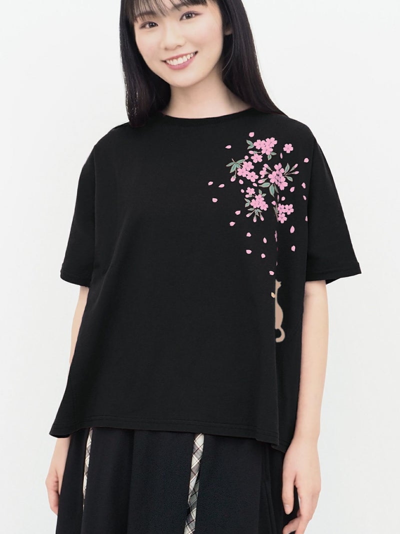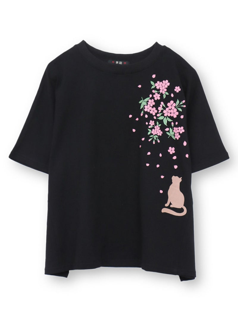 - ≪35%OFF≫【雅結】桜と猫プリント ドルマンプルオーバー≪返品・取寄対応不可≫