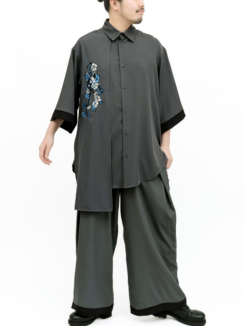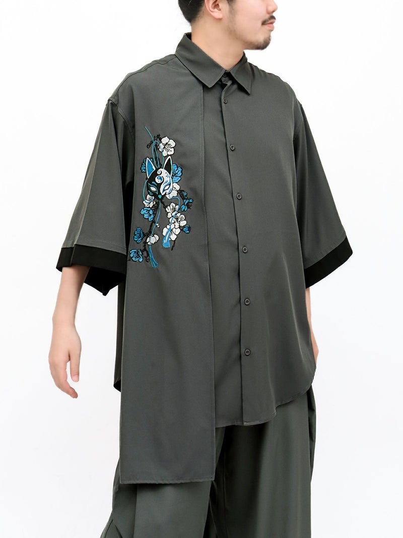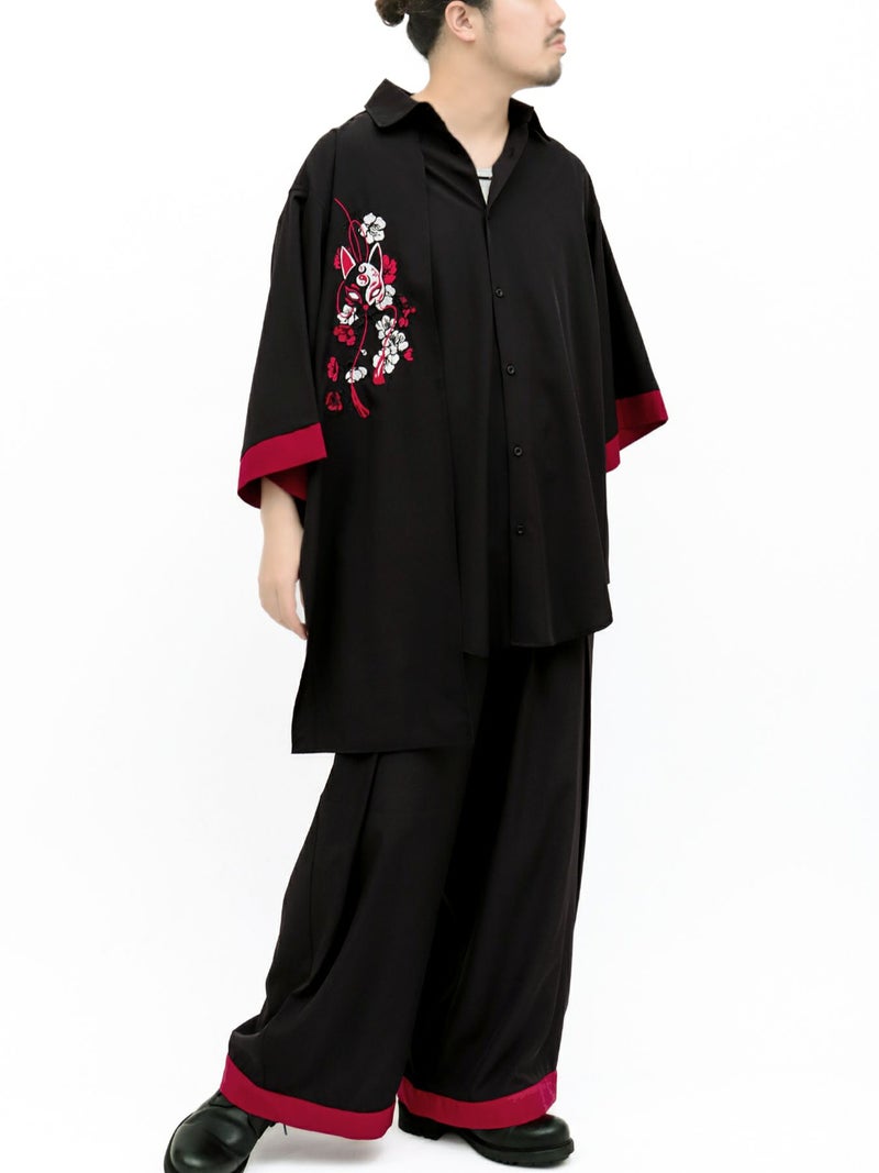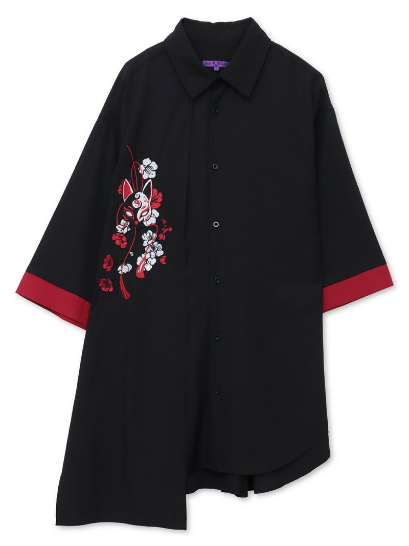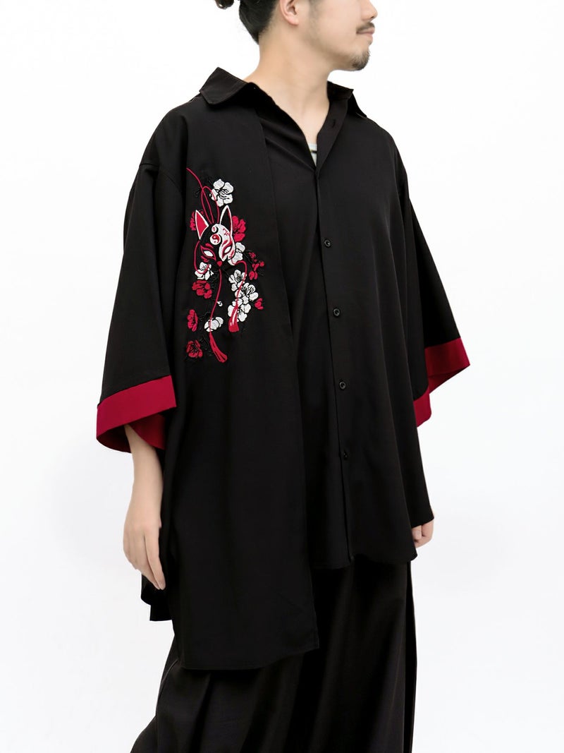 - 【雅結 -EN-】“狐面”総刺繍キモノスリーブ5分袖 変形シャツ