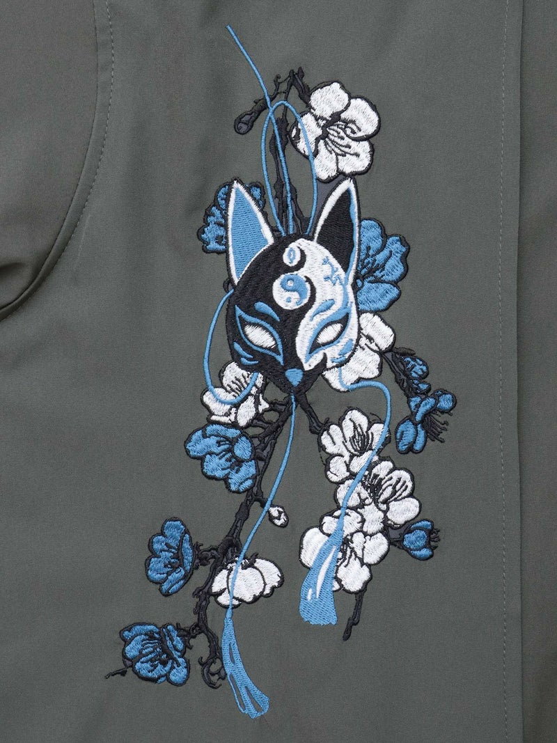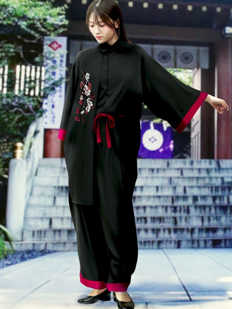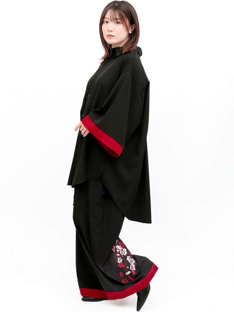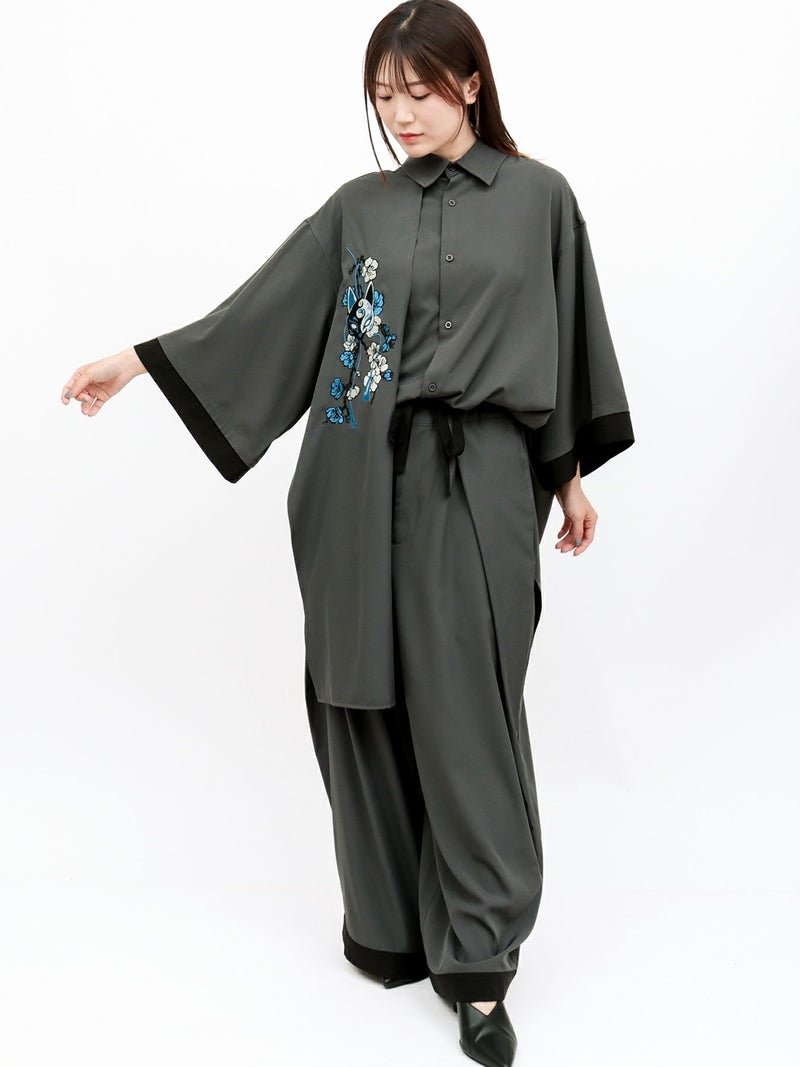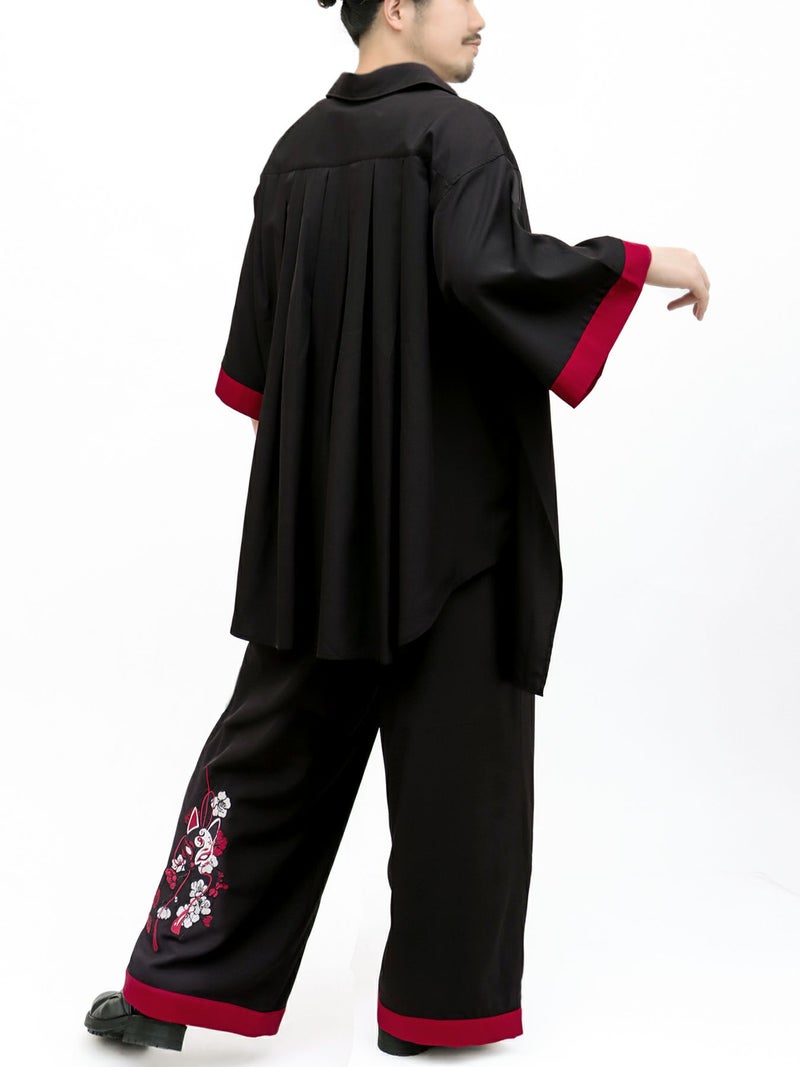 - 【雅結 -EN-】“狐面”総刺繍キモノスリーブ5分袖 変形シャツ