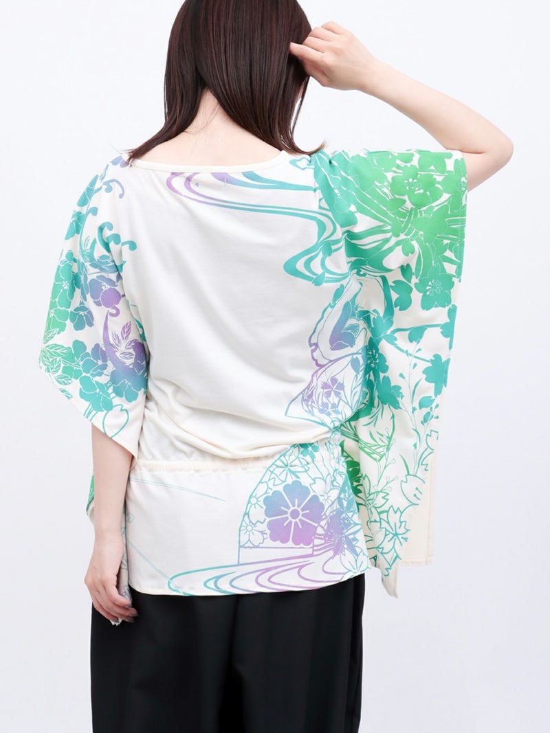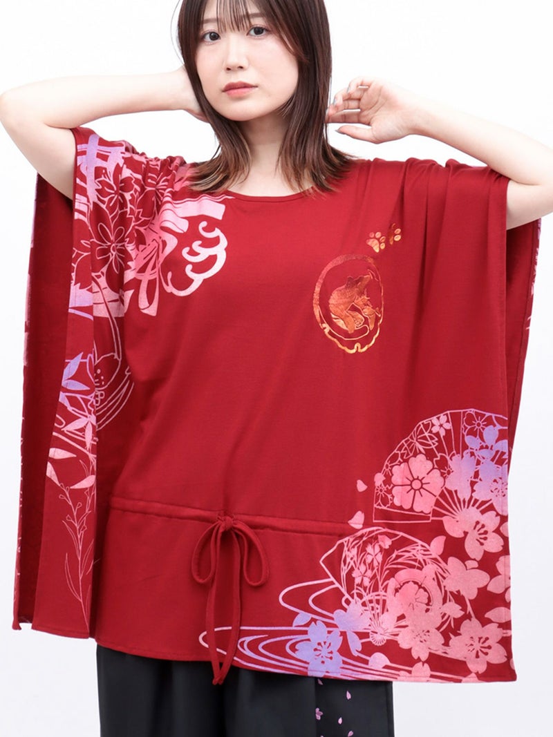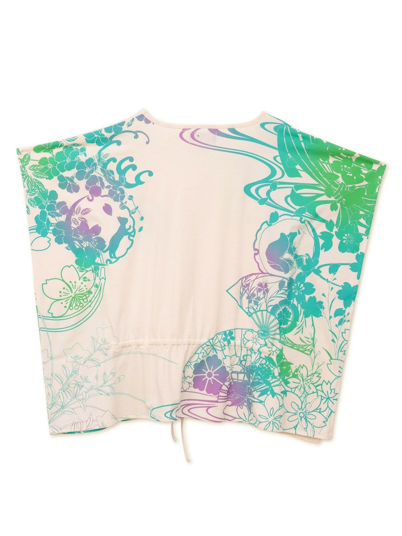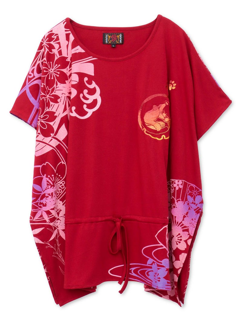 - ≪30%OFF≫【錦】“眠り猫”グラデーションプリント 刺繍入りドルマンチュニック〔別注〕≪返品・取寄対応不可≫