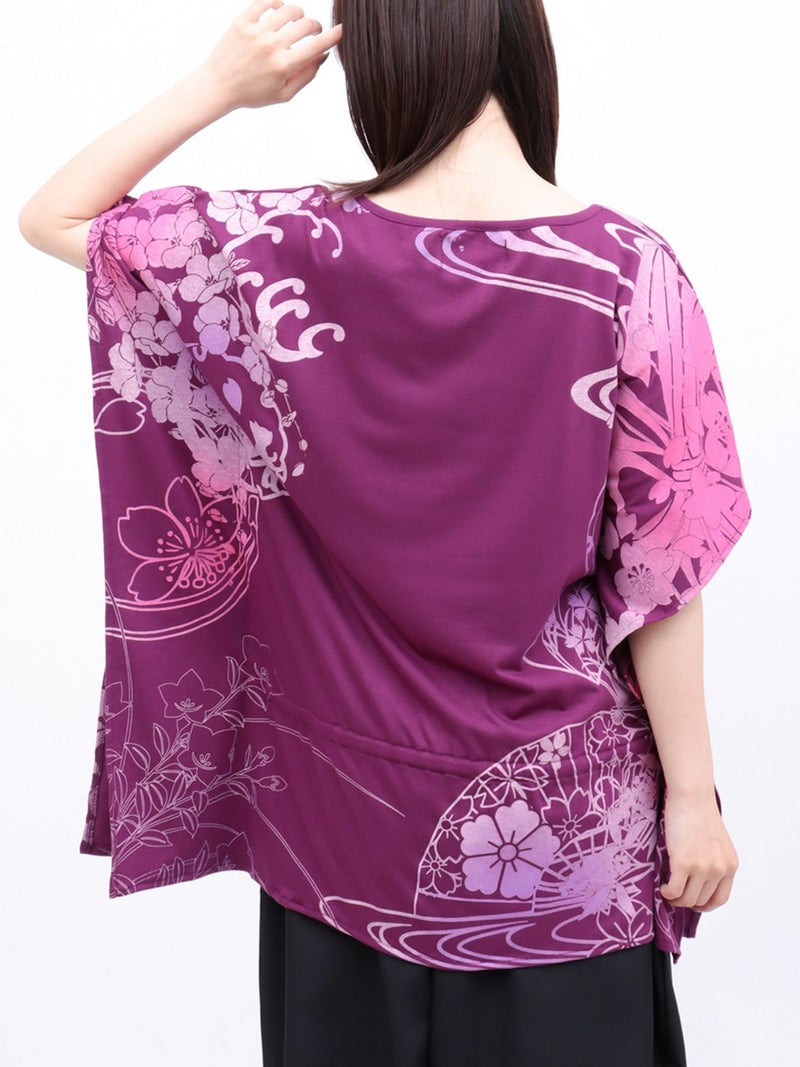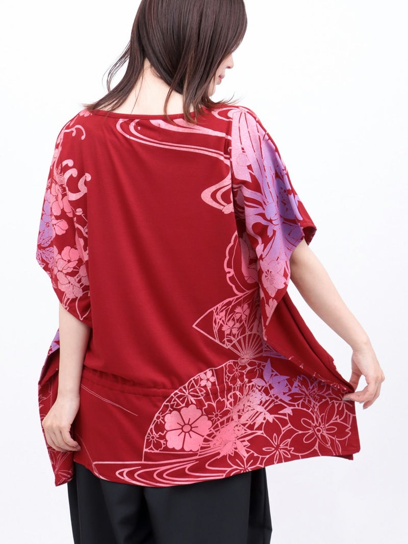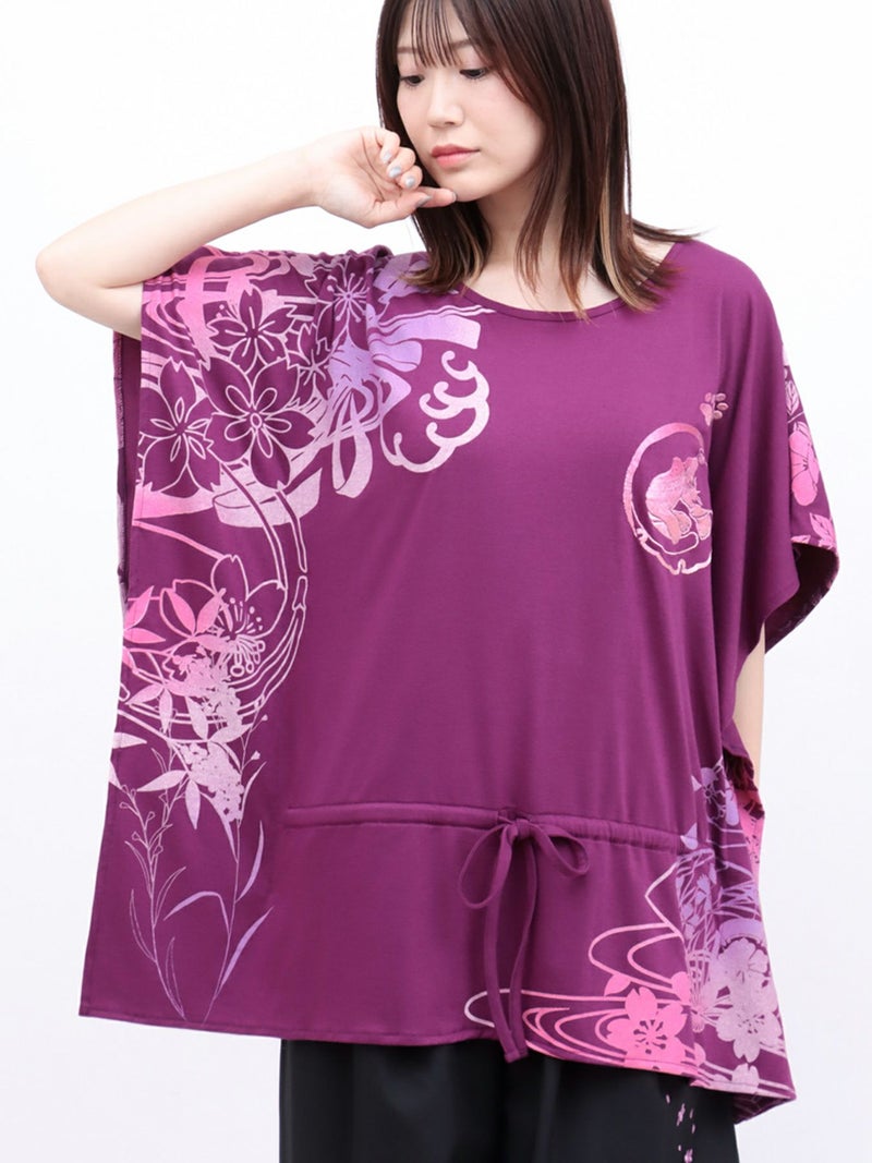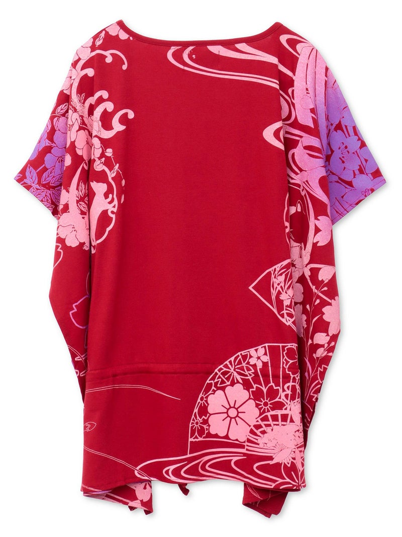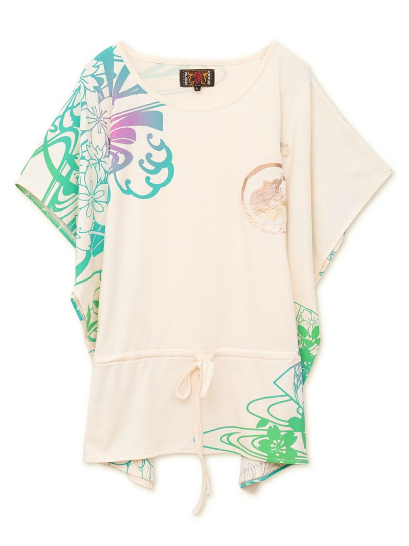 - ≪30%OFF≫【錦】“眠り猫”グラデーションプリント 刺繍入りドルマンチュニック〔別注〕≪返品・取寄対応不可≫