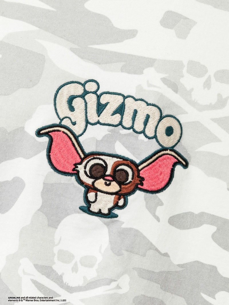 背面には、可愛らしく描かれたギズモとグレムリンを、絵柄下部の「GREMLINS」ロゴとともに緻密な刺繍で描きました。