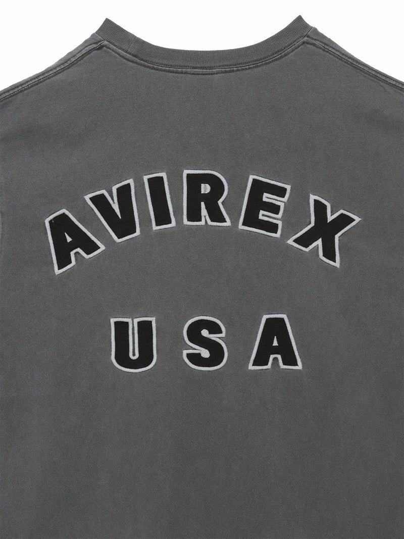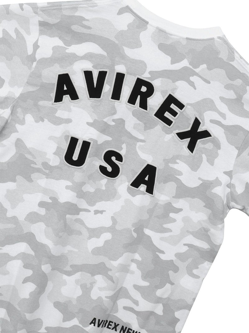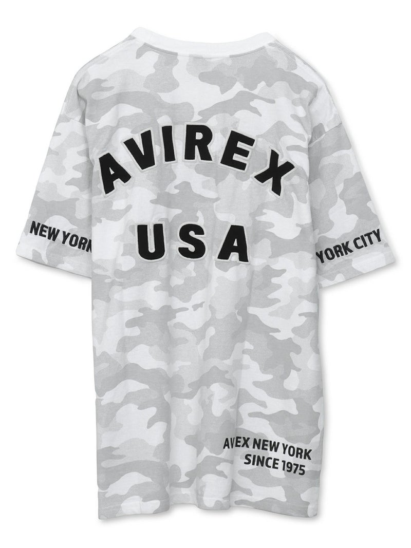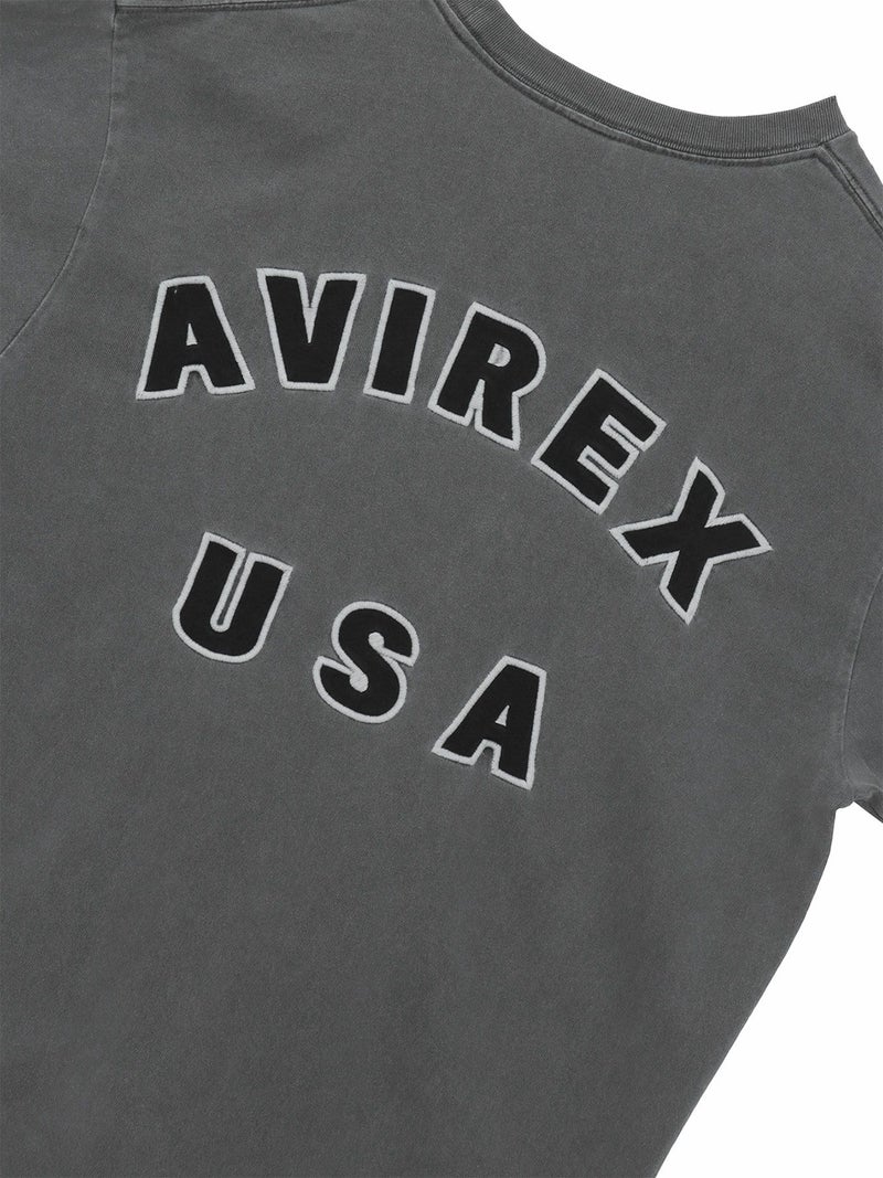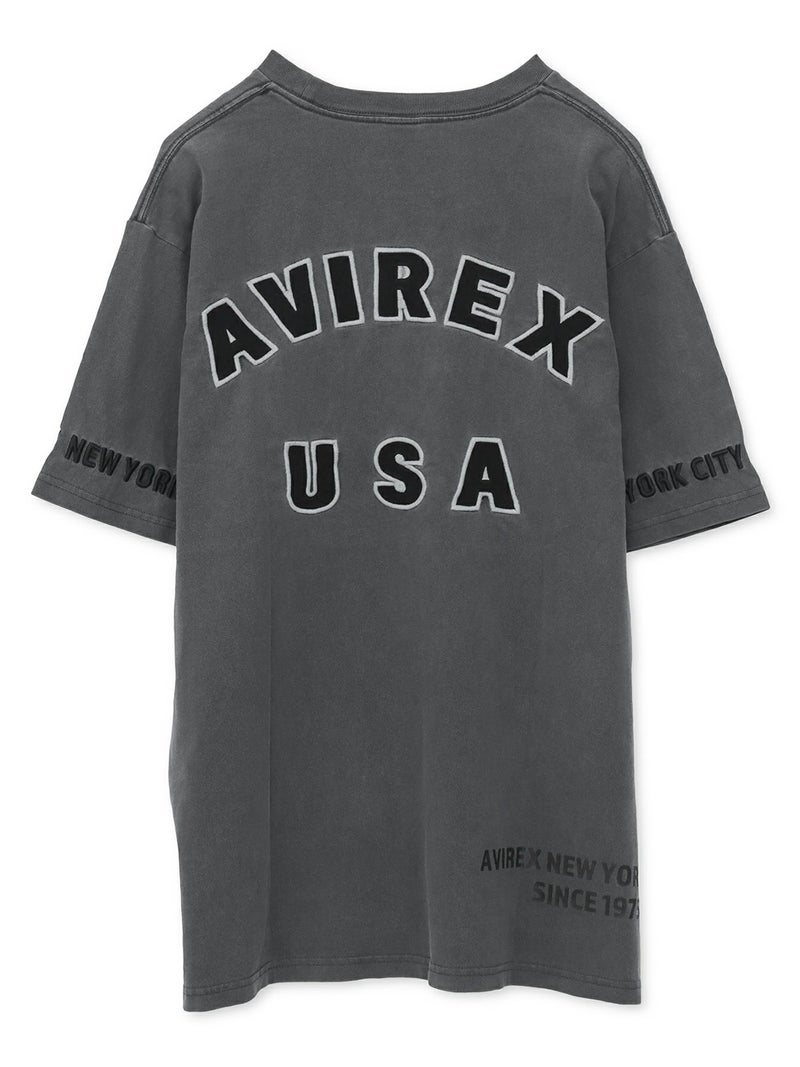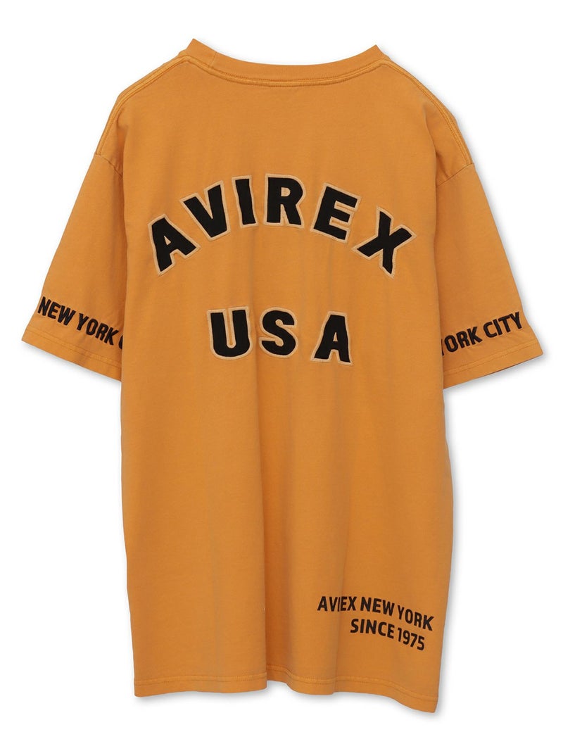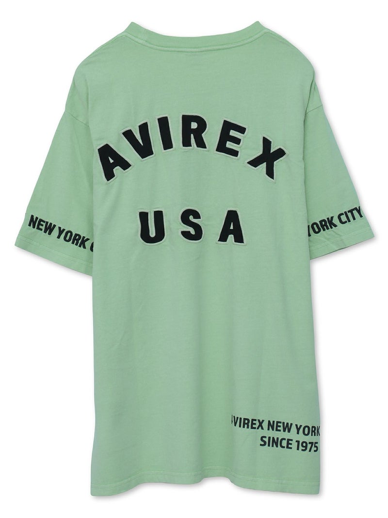 ミリタリーブランドの雄【AVIREX】より、当社限定デザインの半袖Tシャツが入荷。 こちらはバックに【AVIREX USA】のロゴを刺繍アップリケであしらったアイコニックなデザイン。 フロント中央にもブランドロゴ、そして両袖には『NEW YORK CITY』のロゴ刺繍を施した一枚着でも映える仕上がりに。 ややゆったりとしたサイズ感でミリタリーとストリートをミックスさせた、幅広いコーデに対応できる万能なTシャツです。