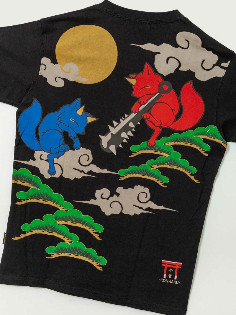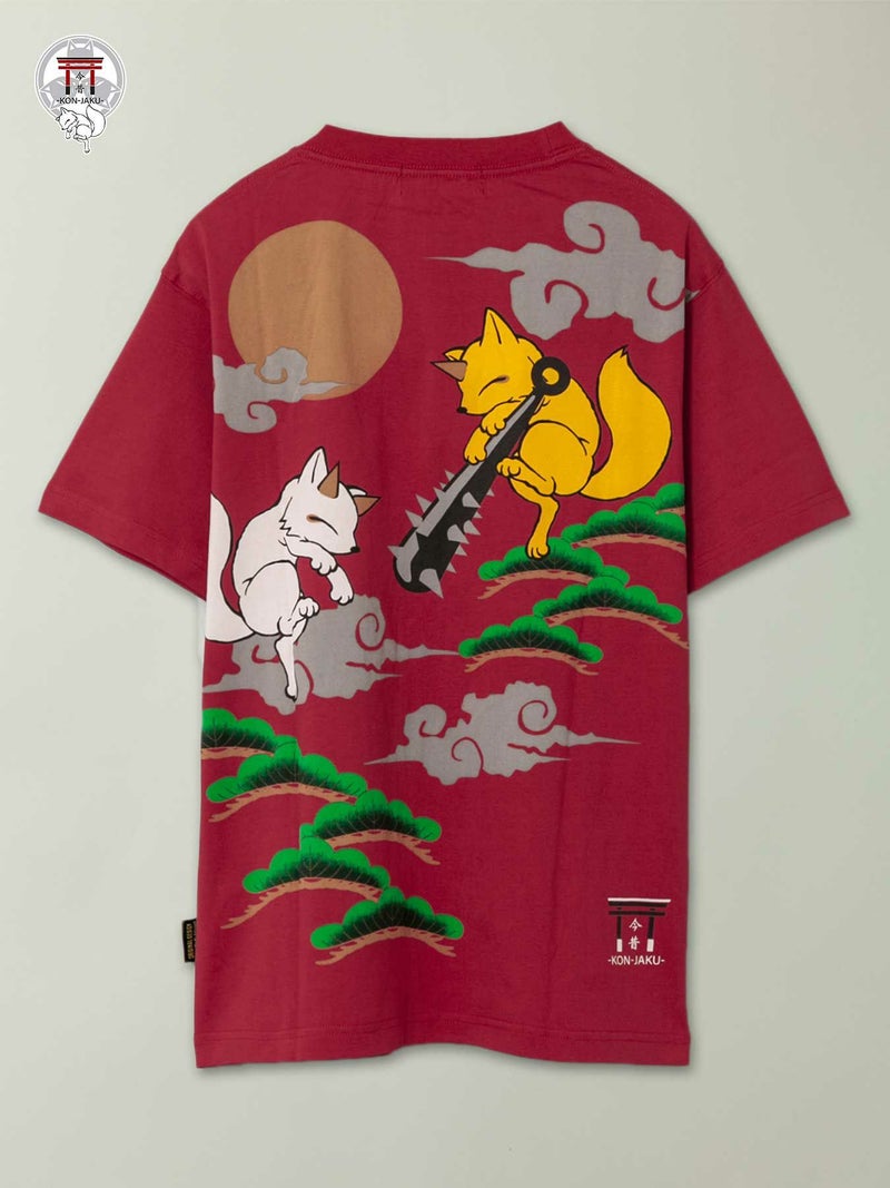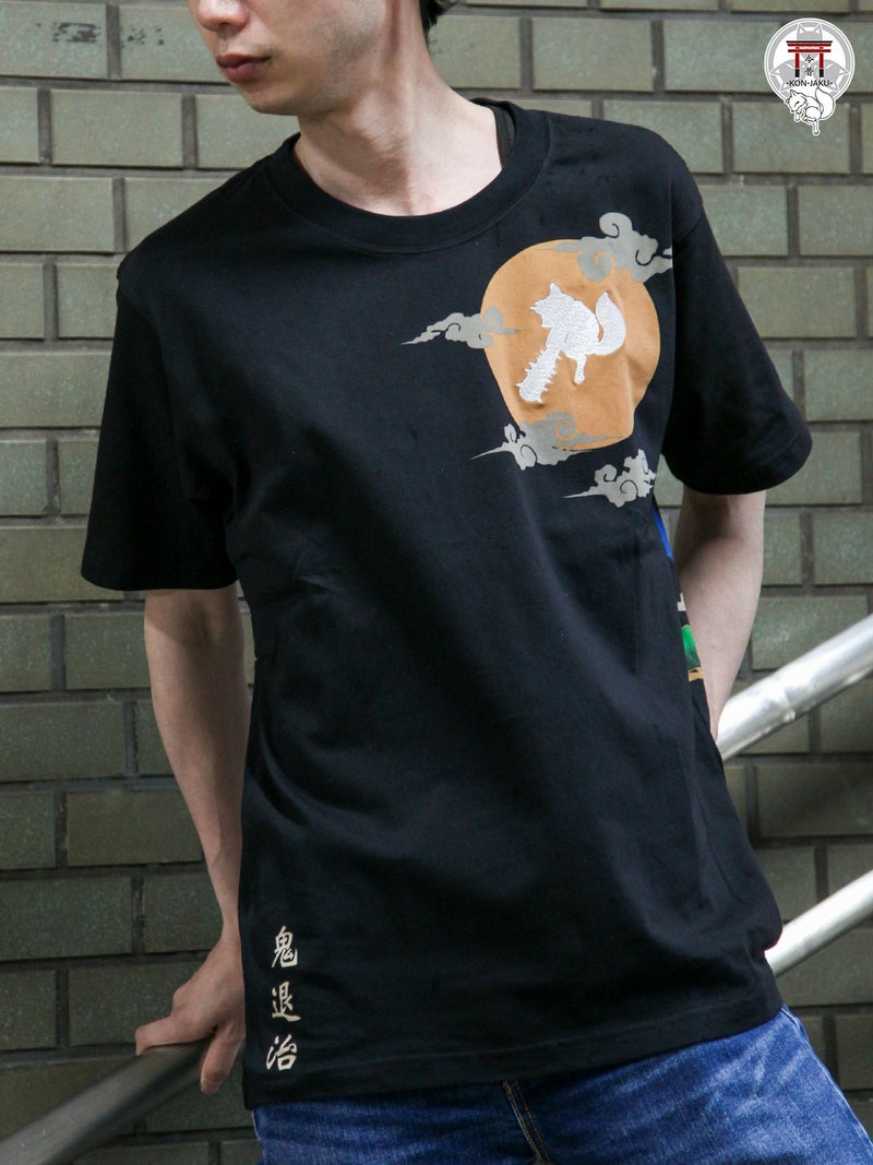 - 【今昔 -KON-JAKU-】“赤鬼青鬼”刺繍入りプリントTシャツ