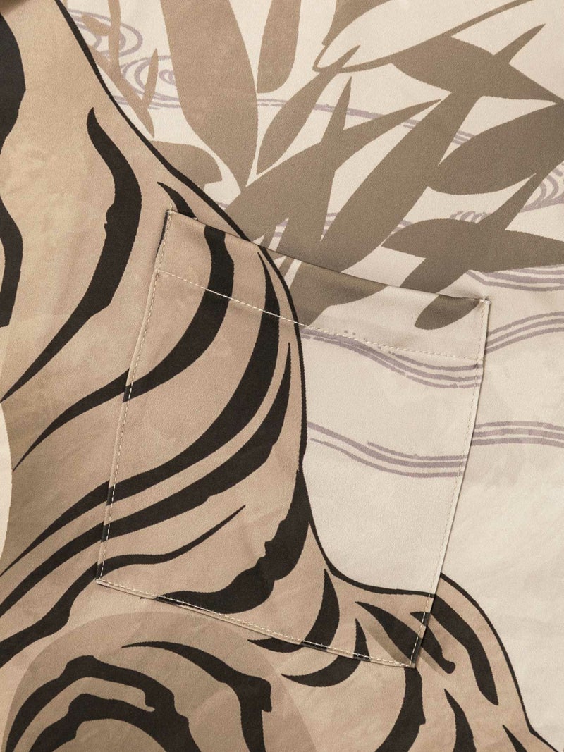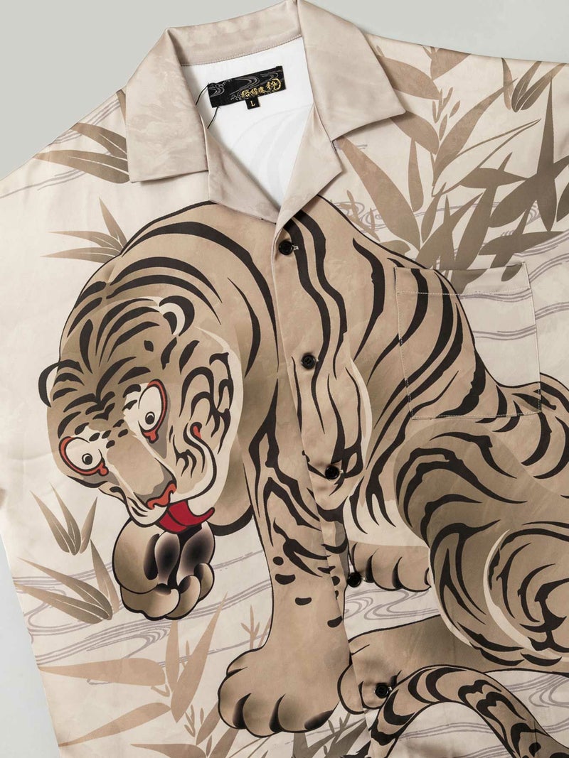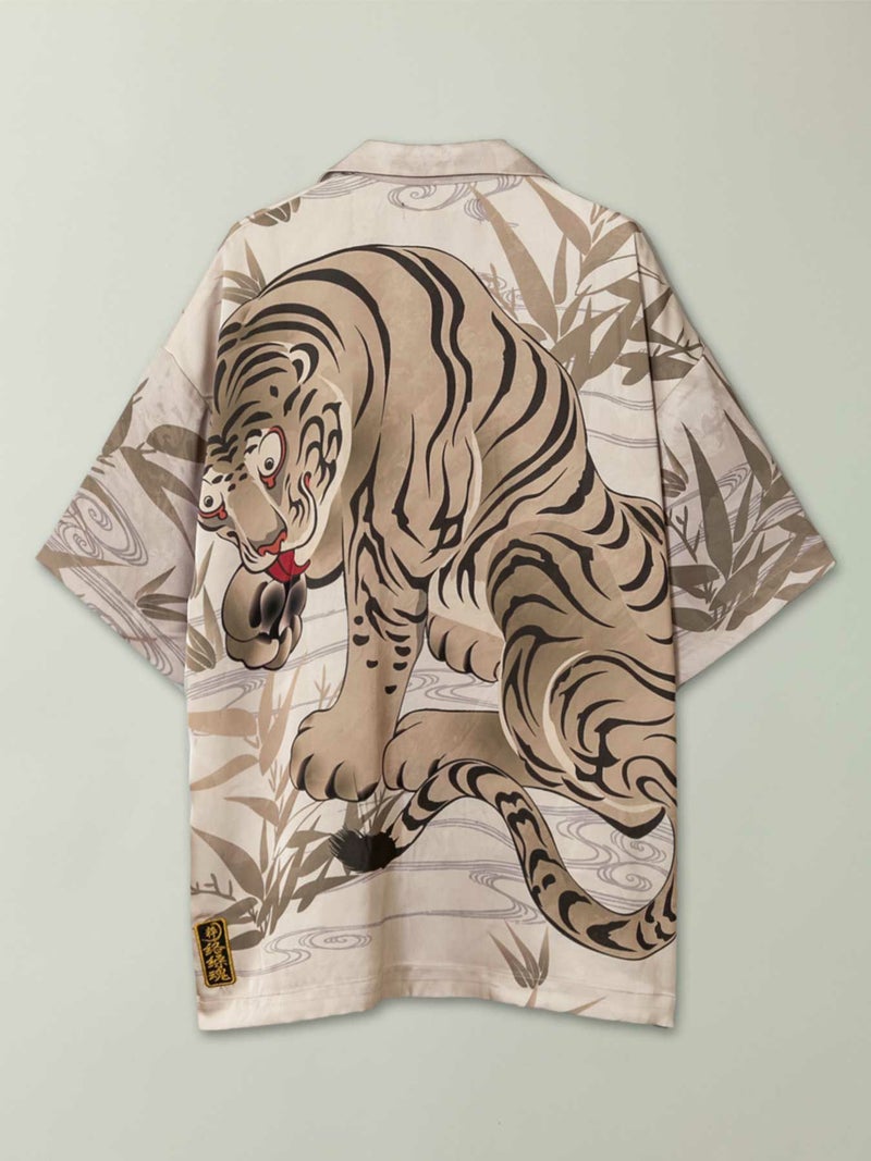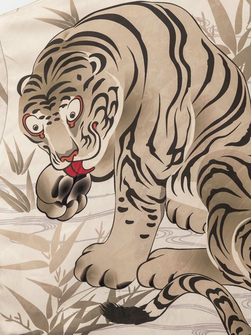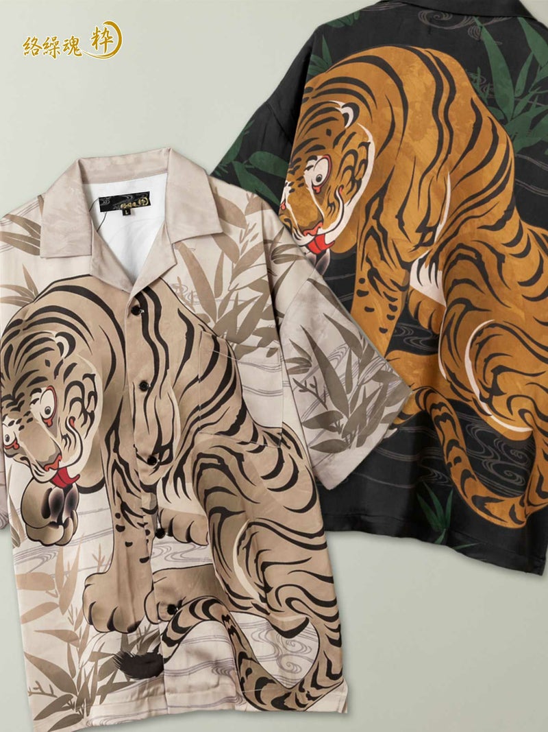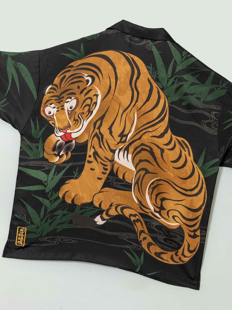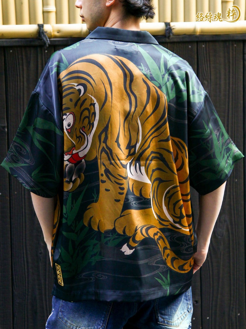 - ≪50%OFF≫【絡繰魂・粋】“虎図-若冲-”昇華転写プリントBIGシルエット半袖シャツ≪返品・取寄対応不可≫