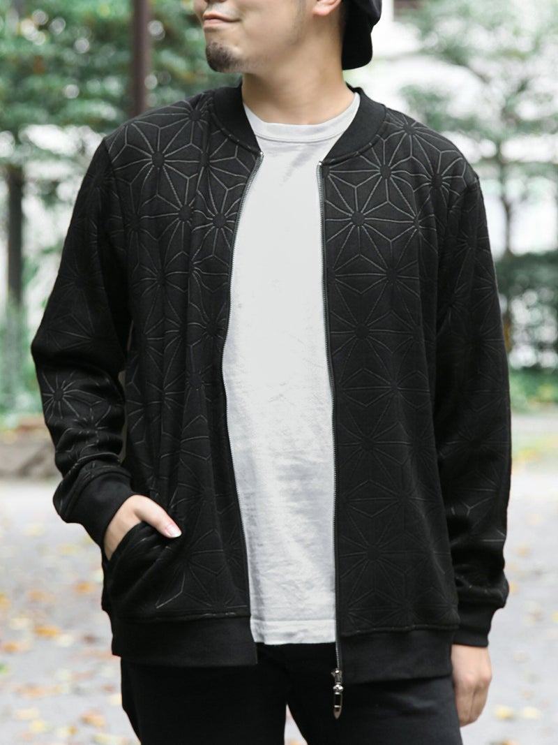 - ≪50%OFF≫【衣櫻】麻の葉柄裏フリースストレッチ素材リブニットジャケット≪返品・取寄対応不可≫