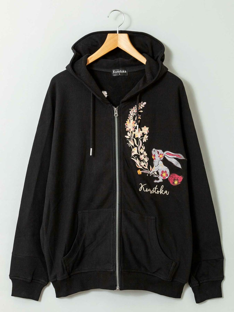 4. 【黒菟華】“月からの手紙”総刺繍ドルマンスリーブ ZIPパーカー