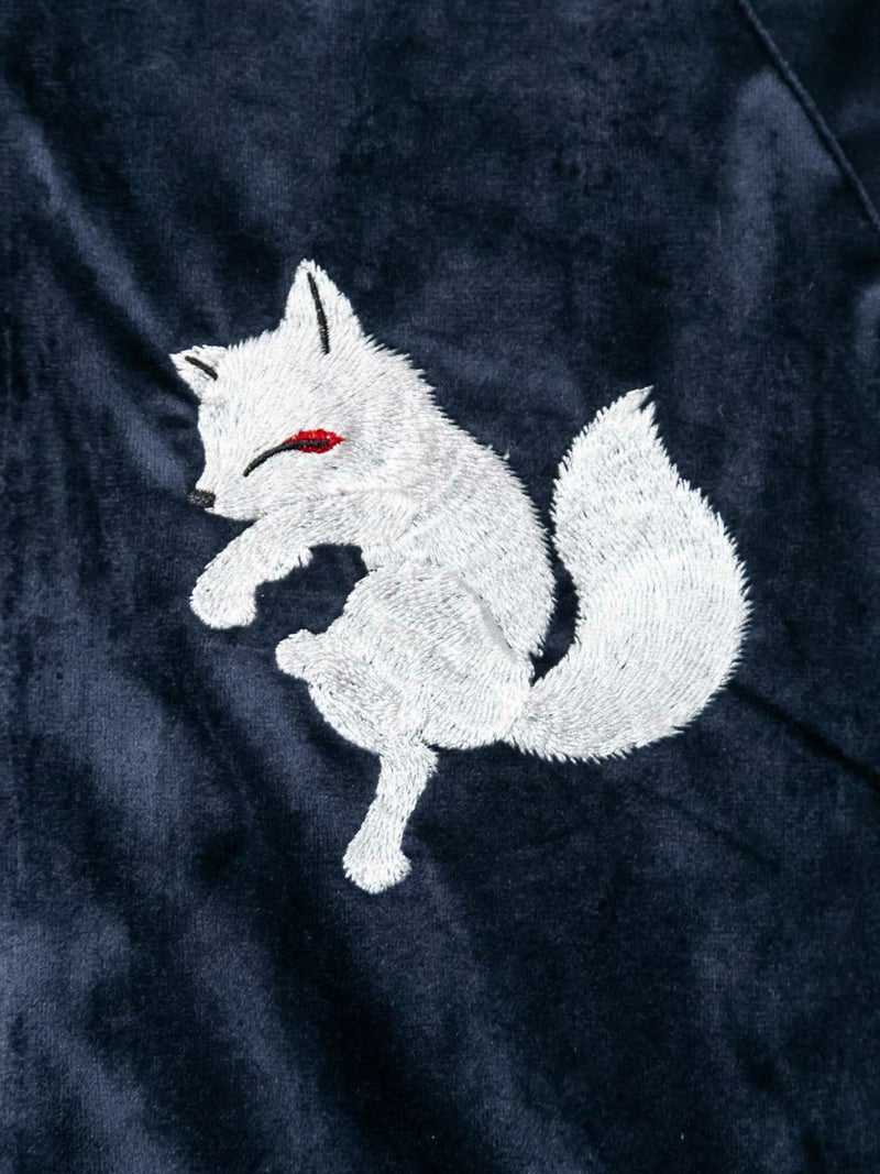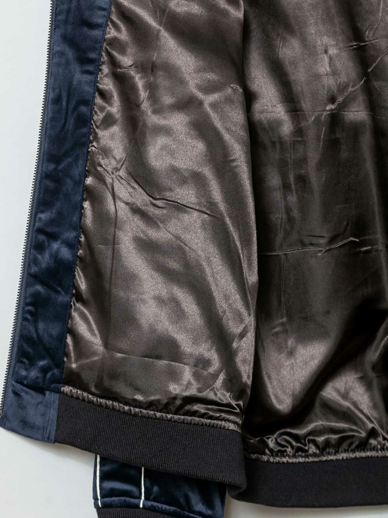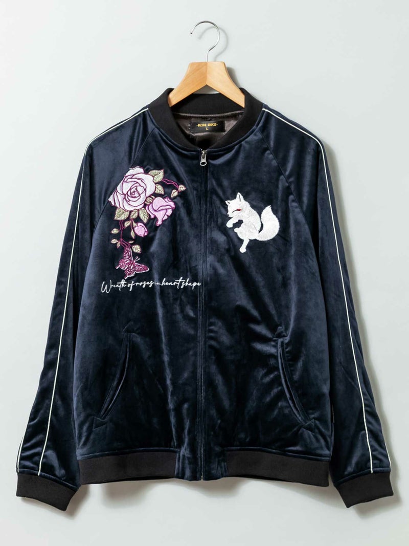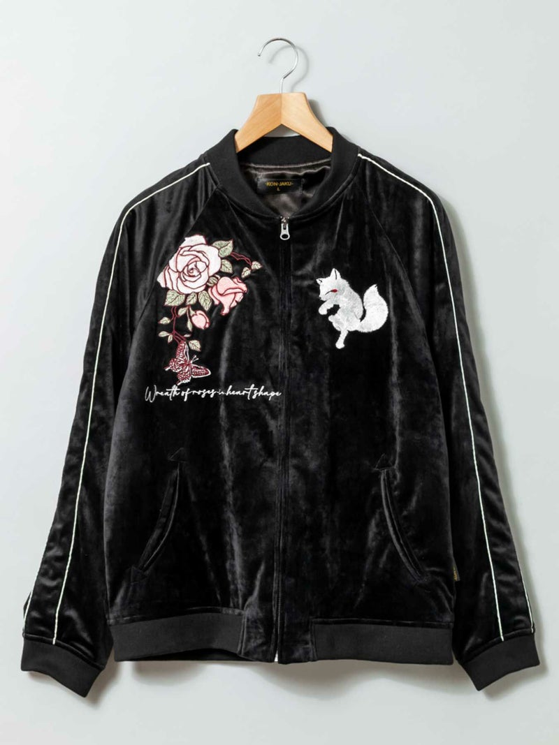 こちらは総刺繍で表現された彩り鮮やかな絵柄が魅力的なベロア生地のスカジャンです。