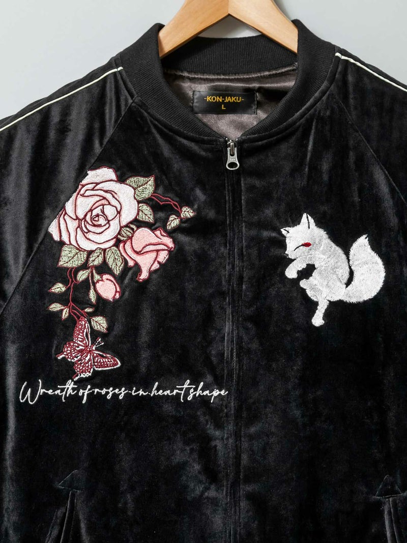 3. 【今昔 -KON-JAKU-】“ハートの形の薔薇のリース”総刺繍ベロアスカジャン