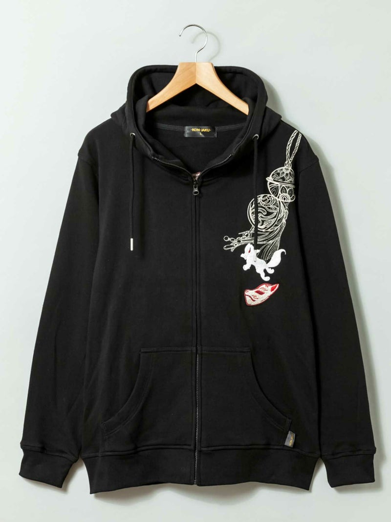 “束ね熨斗と狐”総刺繍ZIPパーカー