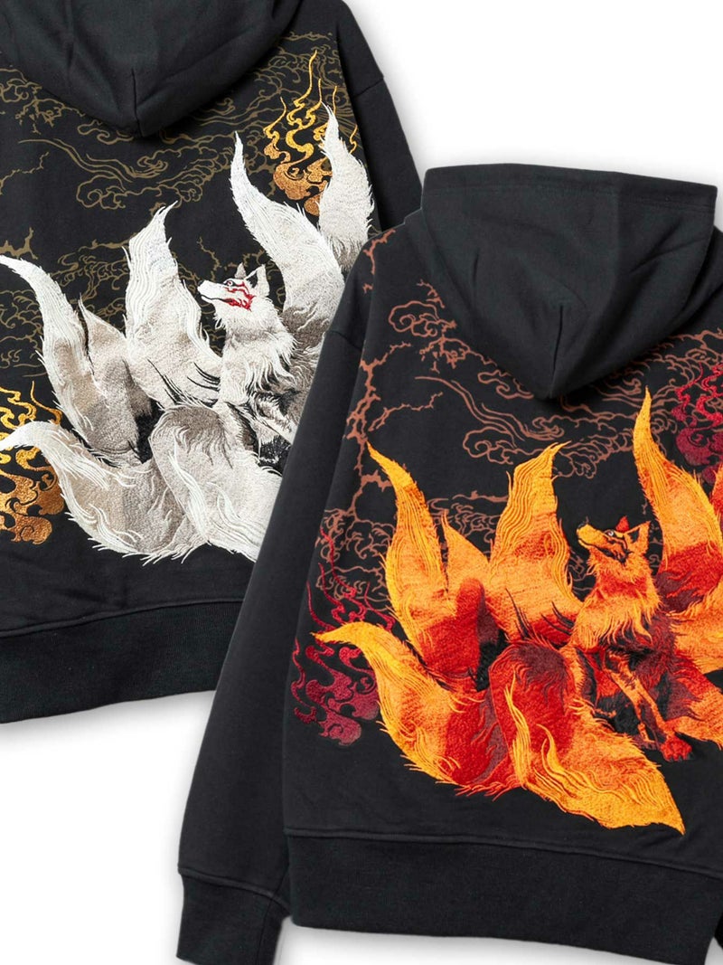 “九尾灯火”総刺繍ZIPパーカー