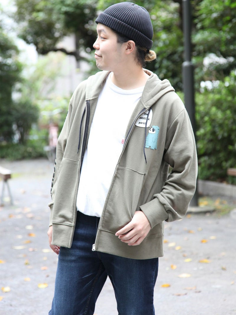 3. 【PANDIESTA JAPAN】“恐竜?パンダフル”発泡プリントZIPパーカー