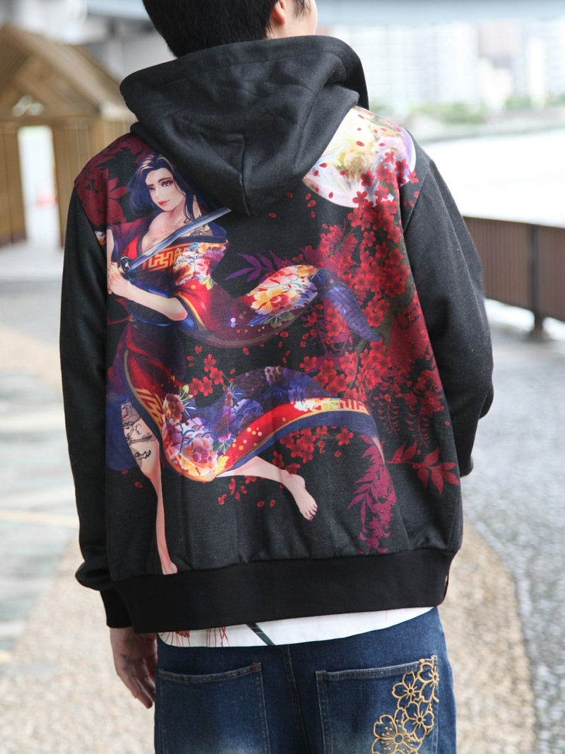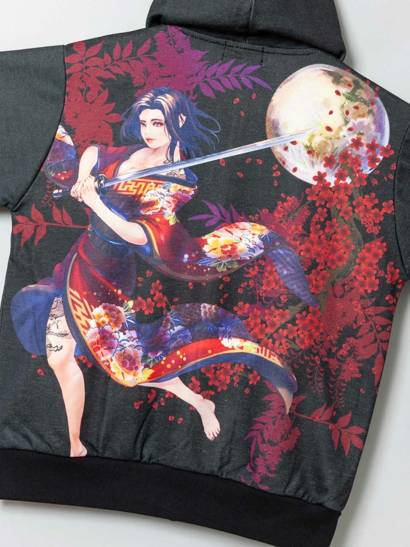 - ≪30%OFF≫【抜刀娘】“葵:暗躍”刺繍入りZIPパーカー≪返品・取寄対応不可≫