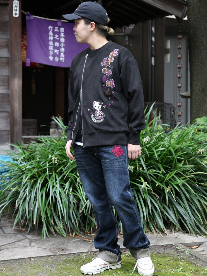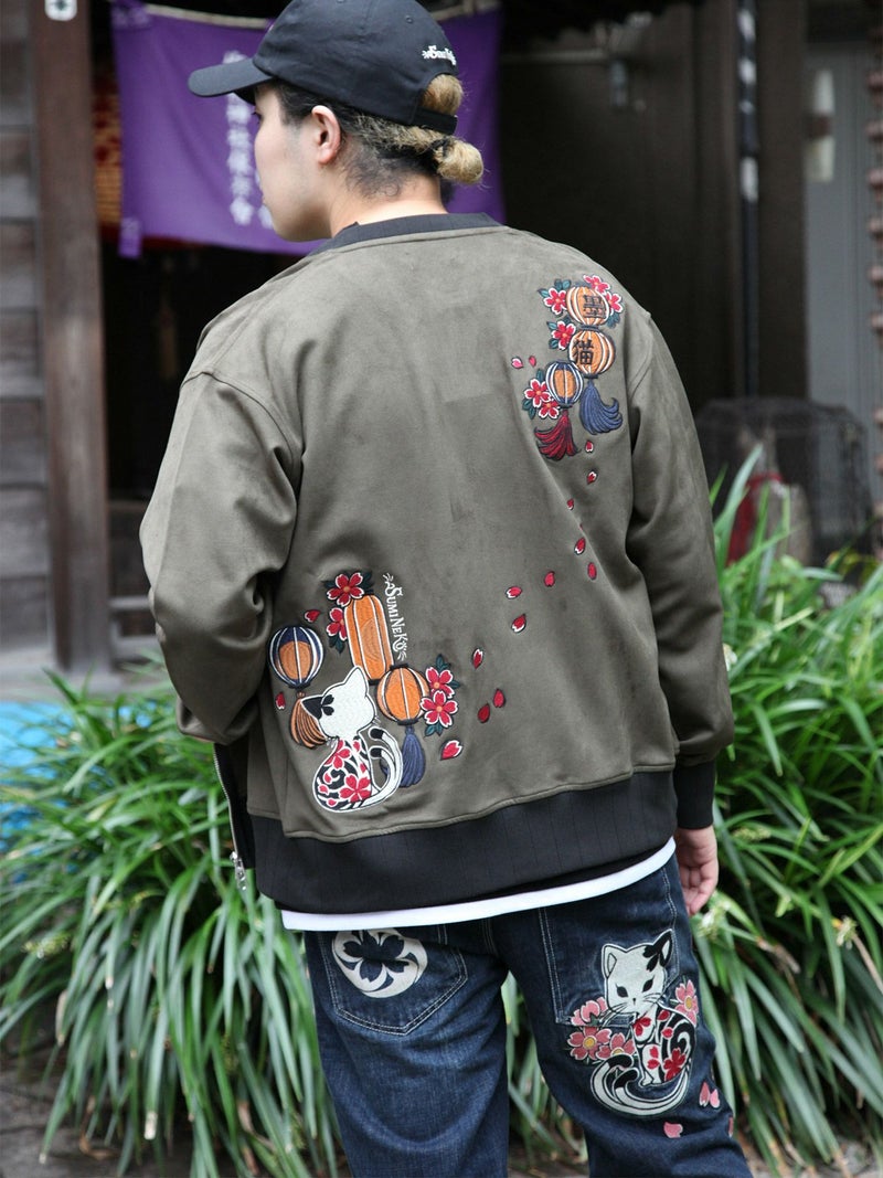 - ≪10%OFF≫【SUMINEKO】“提灯とスミネコ”総刺繍フェイクスウェードZIPジャケット≪返品・取寄対応不可≫