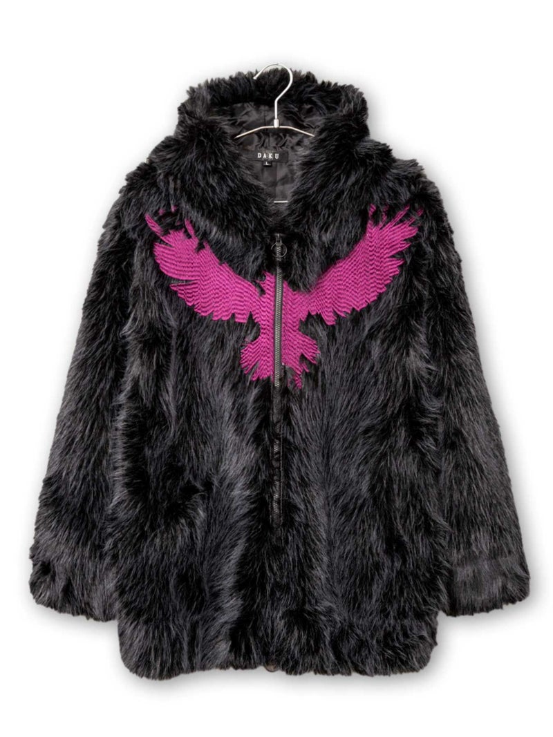 4. 【DAKU】“カラス”総刺繍フェイクファーパーカー